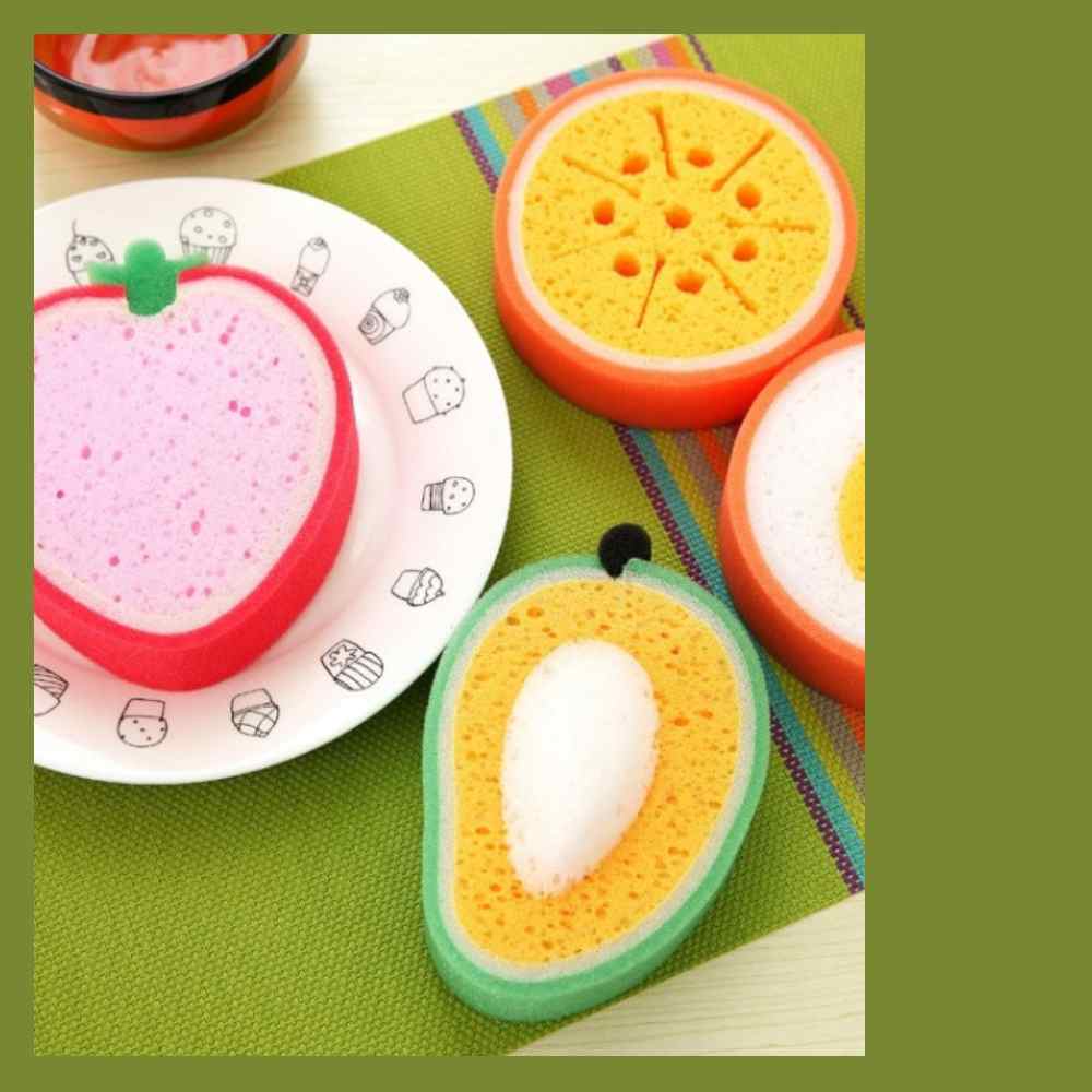 ฟองน้ำล้างจาน รูปทรงผลไม้ ฟองน้ำ ขัดตัวได้ มีให้เลือก3ลาย พร้อมส่ง