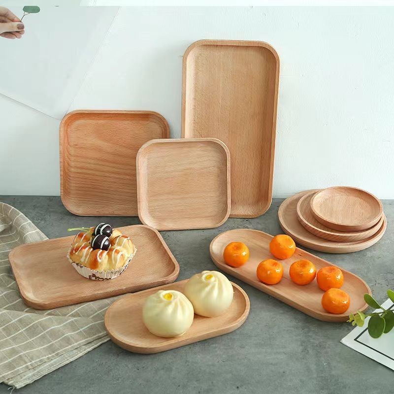 ถาดไม้ สไตล์ญี่ปุ่น มินิมอล ใส่อาหาร ขนม จากไม้แท้ธรรมชาติ มีให้เลือก4แบบ