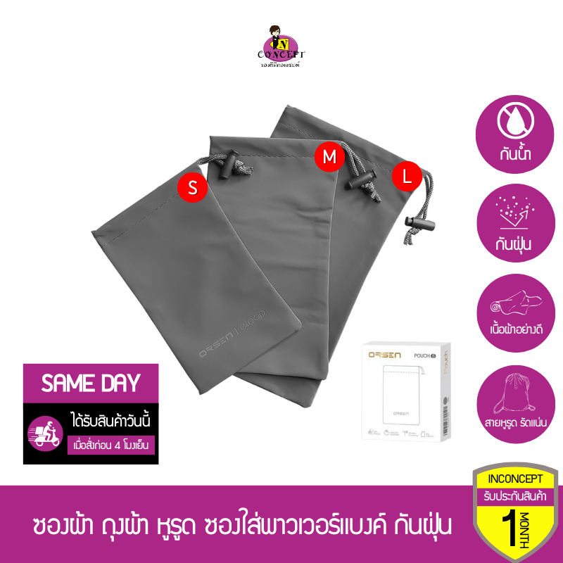 [มีกล่องแพ็คเกจ] Orsen by Eloop Pouch ซองผ้า ซองใส่พาวเวอร์แบงค์ ถุงผ้าหูรูด อเนกประสงค์