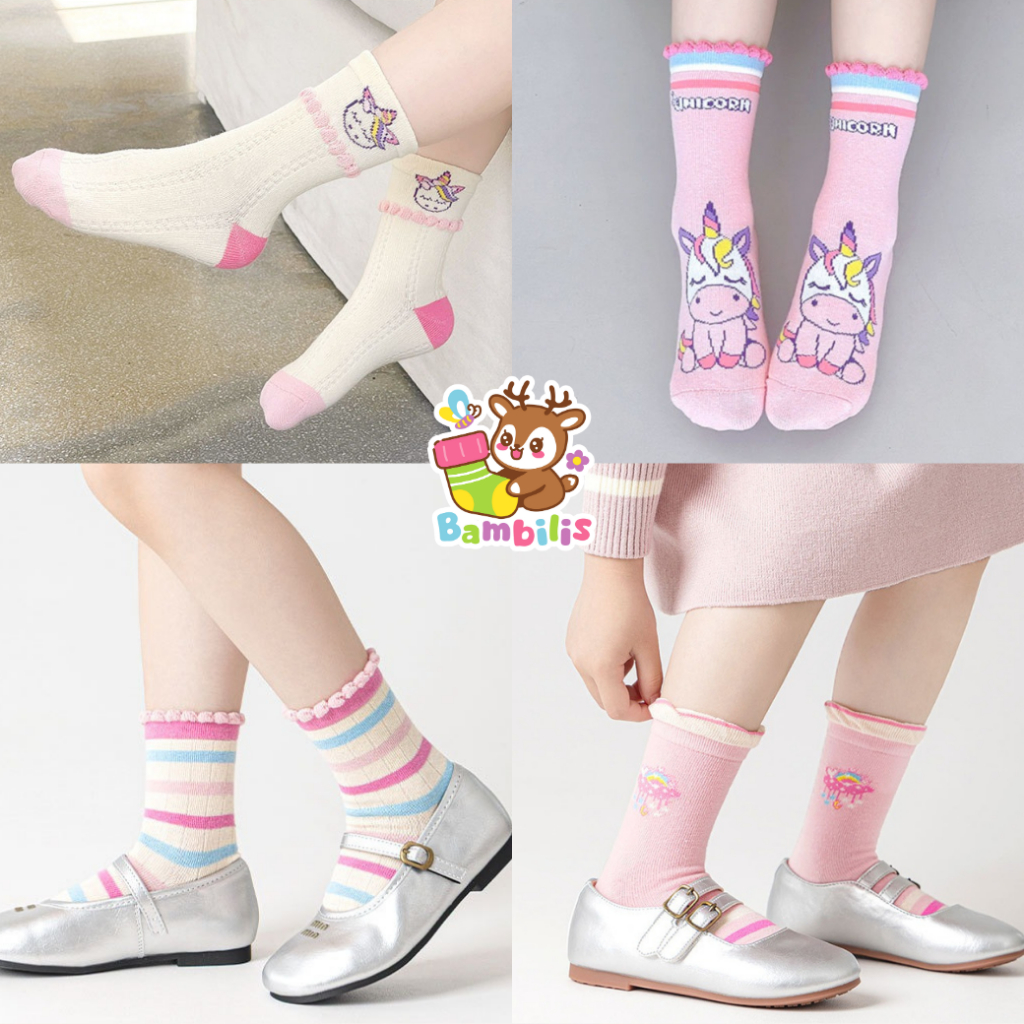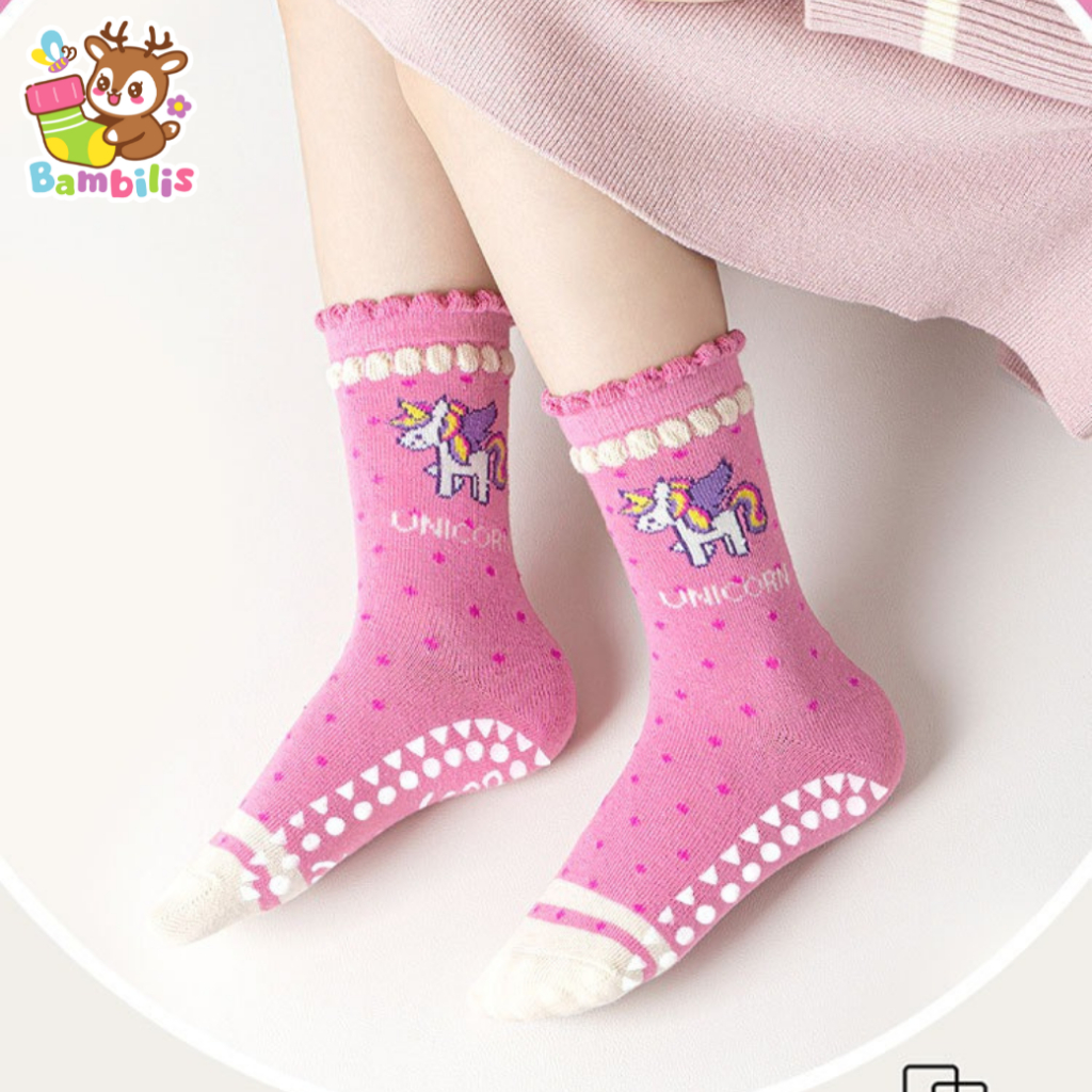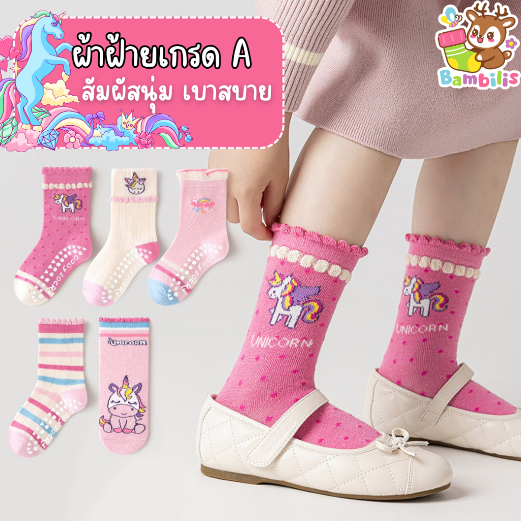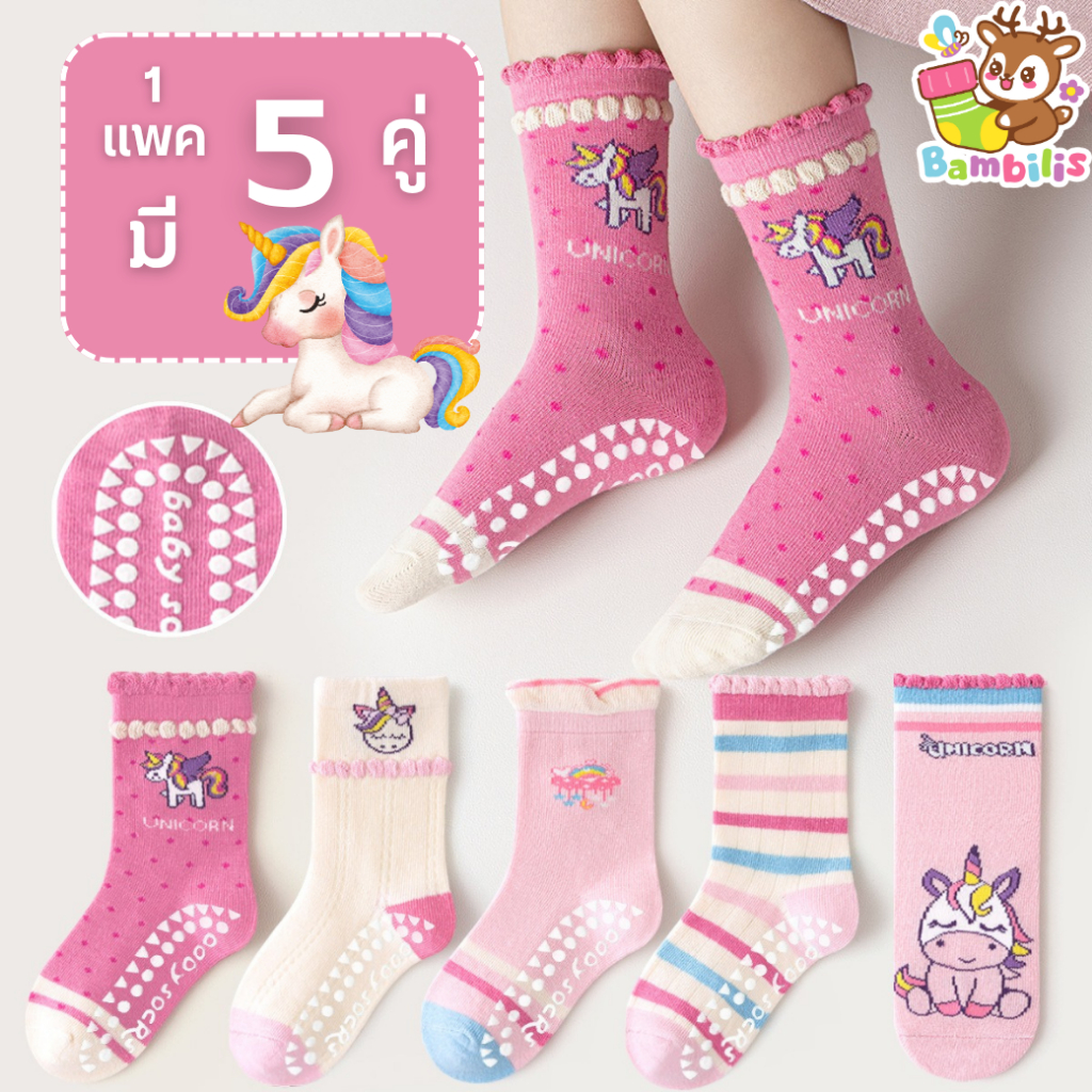 Bambilis : ⚡พร้อมส่ง⚡ ถุงเท้าเด็ก ถุงเท้าเด็กกันลื่น 1 แพคมี 5 คู่ ลายยูนิคอร์นยาว