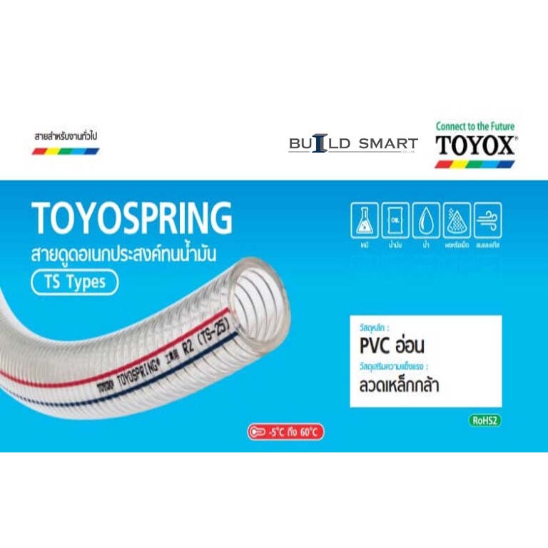 TOYOX สายยาง ใยลวด TOYOSPRING TS 1 "- 1.1/2 " สายดูด น้ำมัน แรงดันหม้อน้ำ ทนความร้อน 60 องศา