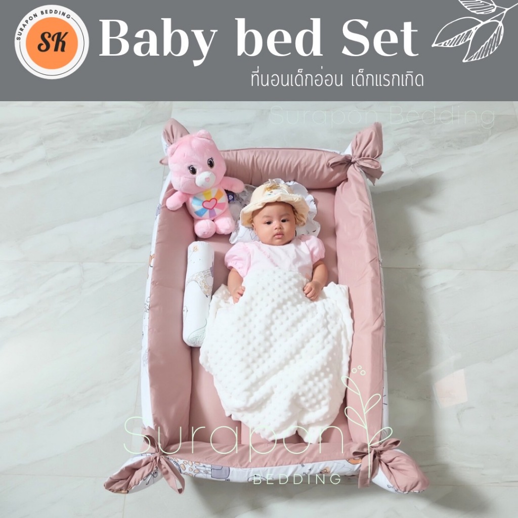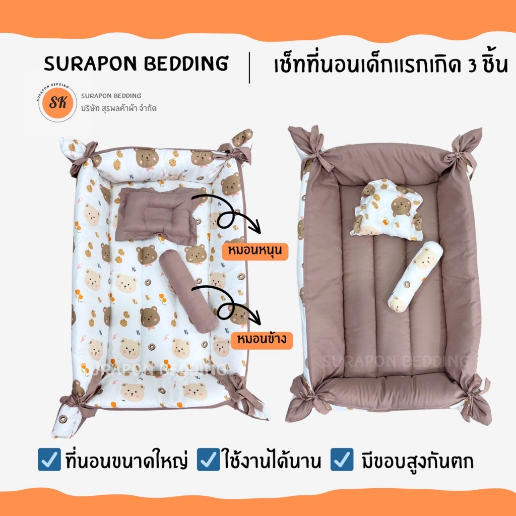 Surapon : ที่นอนเด็กอ่อน ที่นอนเด็กแรกเกิด เช็ท 3 ชิ้น (แบบยกขอบสูงกันตก) หมดปัญหาลูกน้อยกลิ้งตกที่นอน