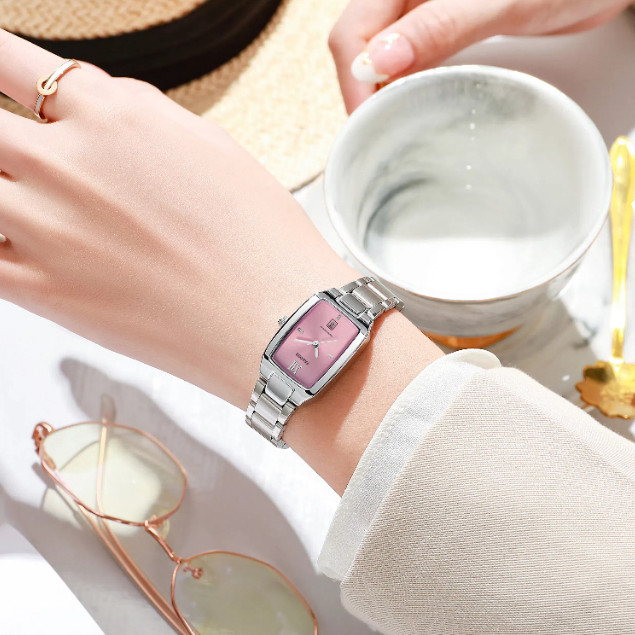 WWOOR ว้าว หรูหรานาฬิกาผู้หญิงแฟชั่นสแตนเลสกันน้ําสุภาพสตรีควอตซ์นาฬิกาข้อมือสร้อยข้อมือหรูหรานาฬิกาวันที่-042ล