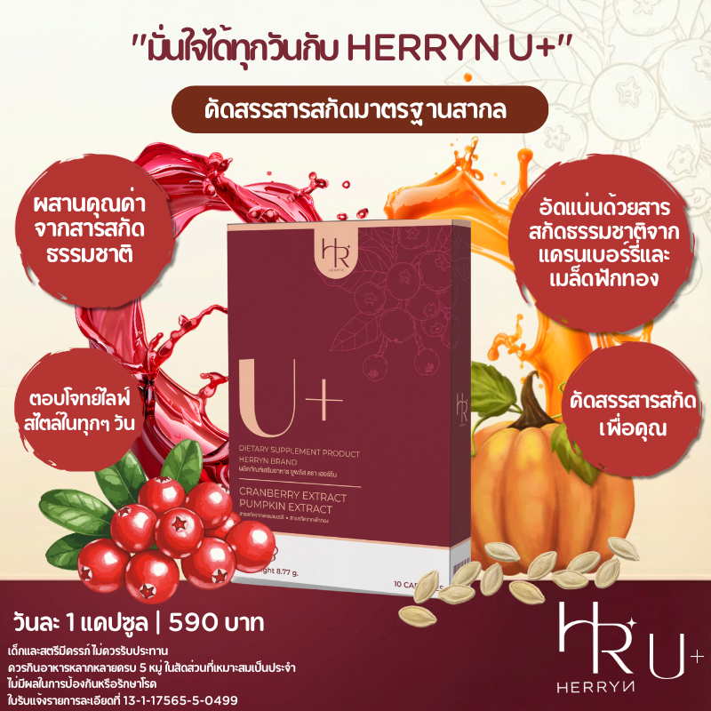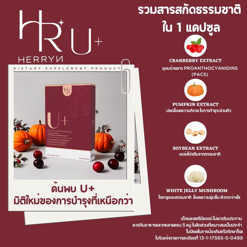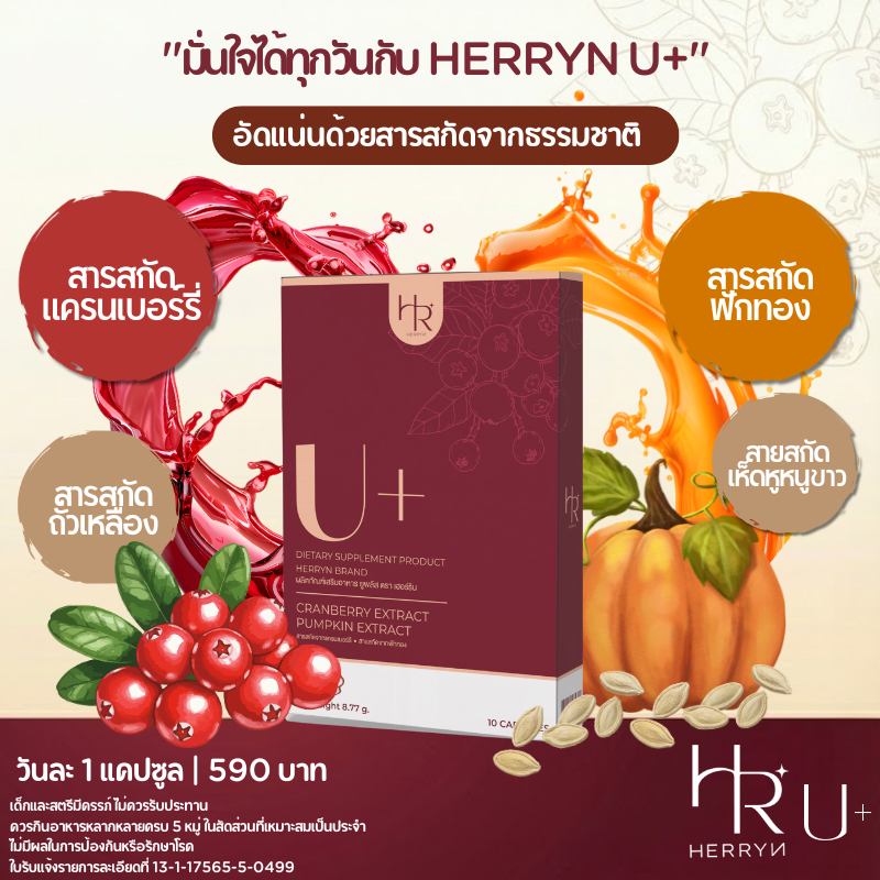 Herryn U+ วิตามินแครนเบอร์รี่สกัด&เมล็ดฟักทองสกัด สำหรับคนมีปัญหาปัสสาวะบ่อย ดูแลสุขภาพ
