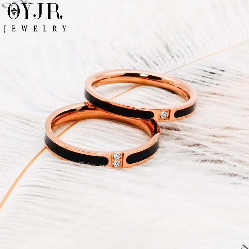 OYJR แหวนสีดำเรียบๆแฟชั่น แหวนสแตนเลสสำหรับผู้หญิง