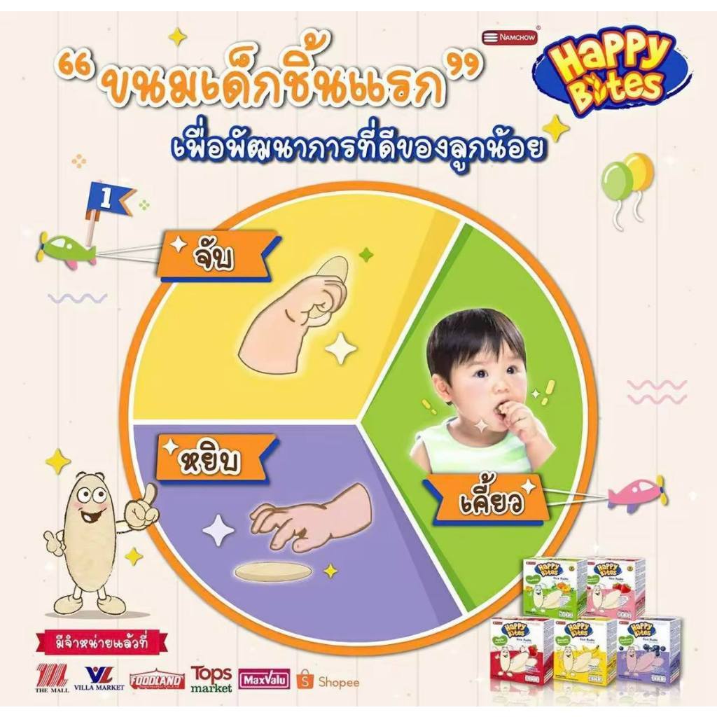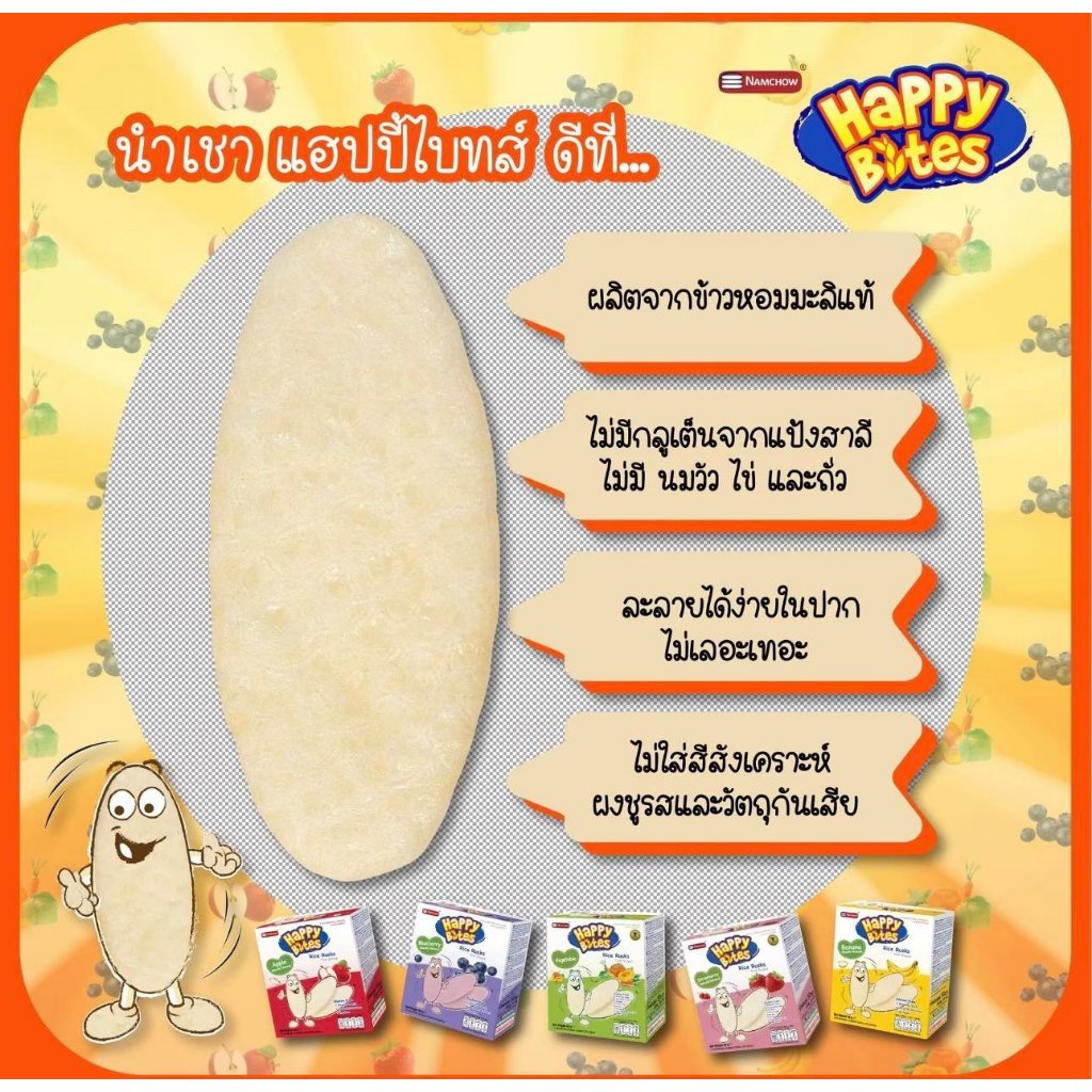 Happy Bites แฮปปี้ไบทส์ ขนมข้าวหอมมะลิอบกรอบ สำหรับเด็ก 6M+ ขนาด 15g/42g/50g ขนมเด็กสุขภาพดี