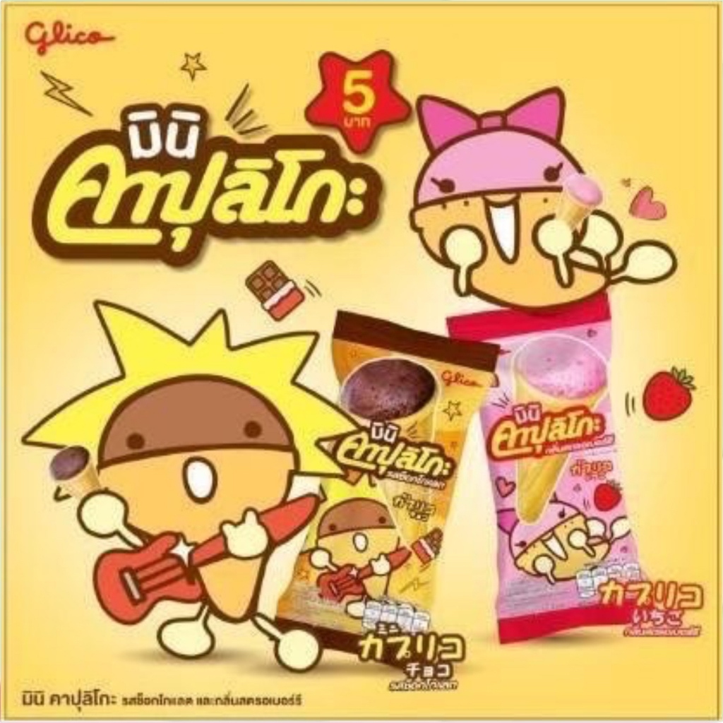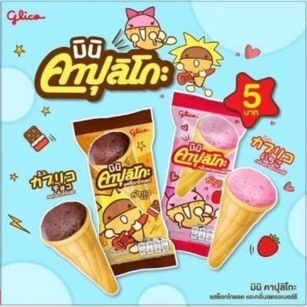 ขนม มินิ คาปุลิโกะ 5บาท 12ชิ้น สตรอเบอร์รี่ ช็อคโกแลต ไอติม โคน กูลิโกะ เล็ก น่ารัก กรอบ อร่อย