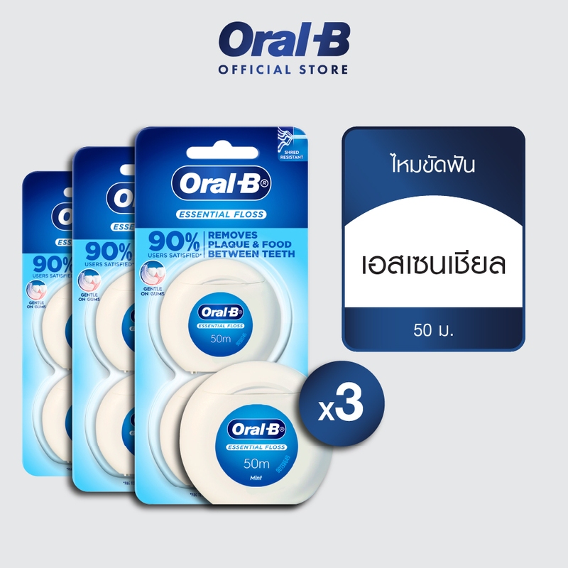 [Flash sale ลด 50%] Oral-B ออรัลบี ไหมขัดฟัน เอสเซนเชียลฟรอส 50 เมตร Waxed Essential Dental Floss 50M