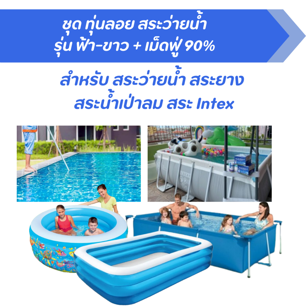 ชุด ทุ่นลอยสระว่ายน้ำ + เม็ดฟู่ 90% เม็ด 15 ก. สำหรับ สระว่ายน้ำ สระเป่าลม สระยาง 1000 ลิตร