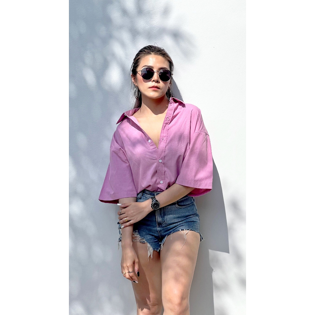 takayay brand เสื้อเชิ้ตแขนสั้น สีพาสเทล 42-54 นิ้ว เสื้อเชิ้ตพาสเทล ผ้าคอตตอนOX2