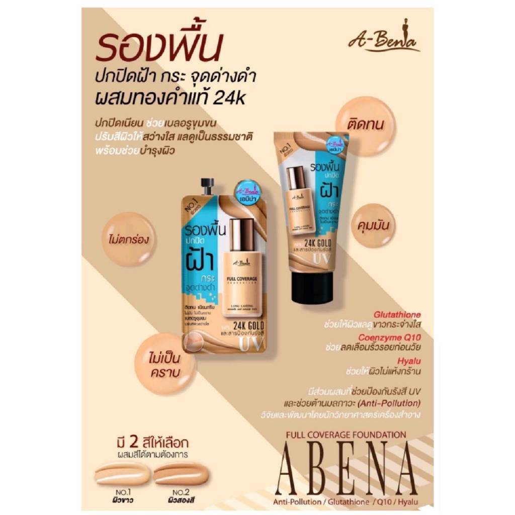 (กล่อง 6ซอง) A-BENA FULL COVERAGE FOUNDATION เอบีน่ารองพื้น สำหรับใบหน้าฝ้า ปกปิดฝ้า