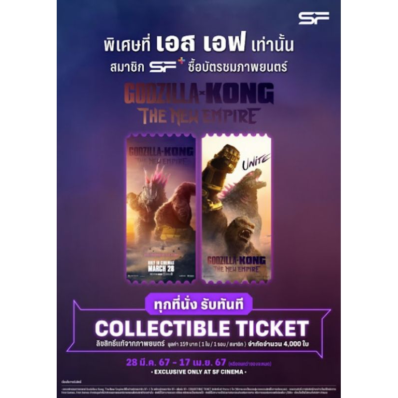 Collectible Ticket Godzilla x Kong The New Empire ก็อดซิลล่า ปะทะ คอง 2 ลิขสิทธิ์แท้จาก SF Cinema ก็อตซิลล่า ภาค2 คิงคอง
