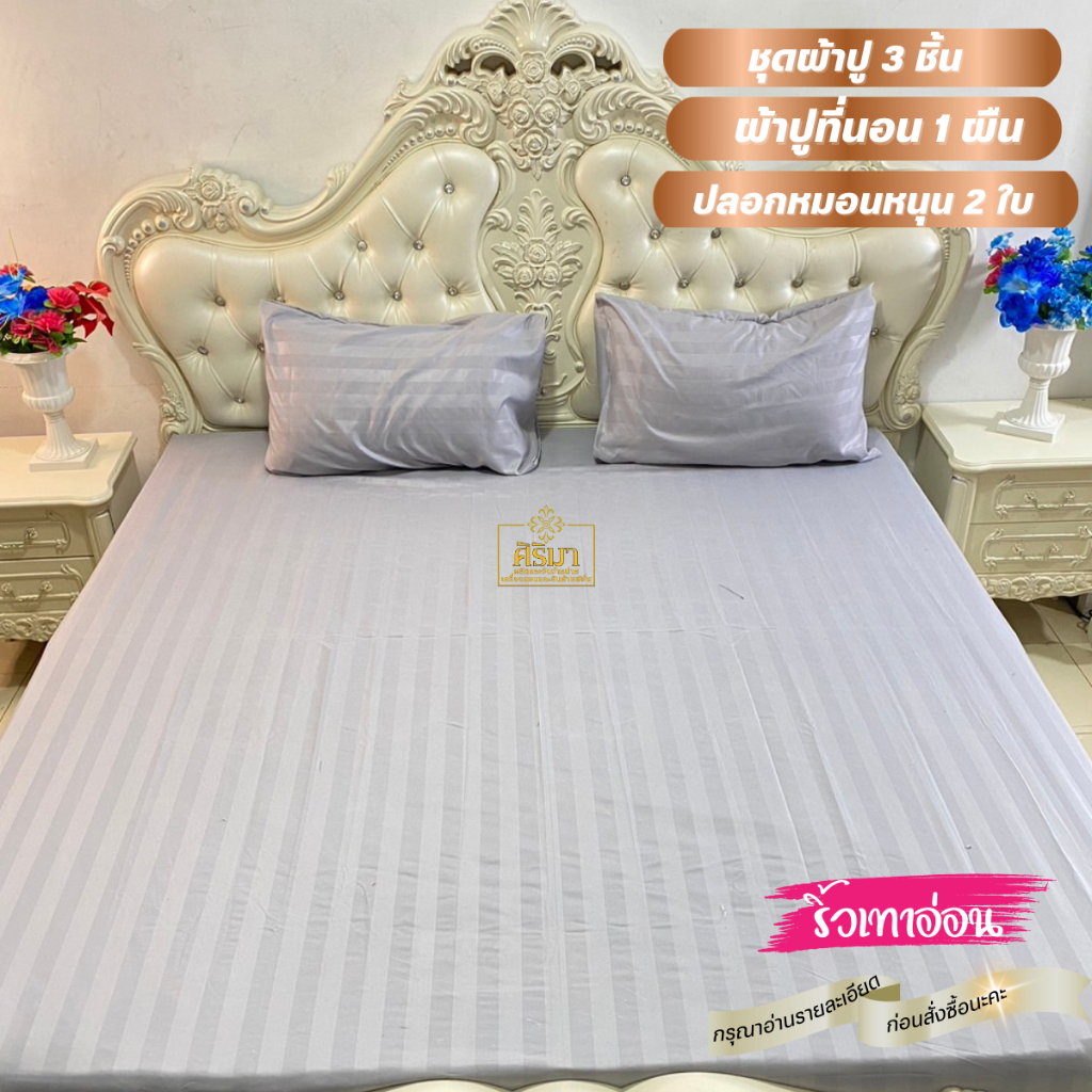 ผ้าปูที่นอน 3 ชิ้น ผ้าปูที่นอน 1 ปลอกหมอน 2 ใบ เลือกสีได้ เนื้อผ้าซาติน นอนนุ่มเย็นสบาย