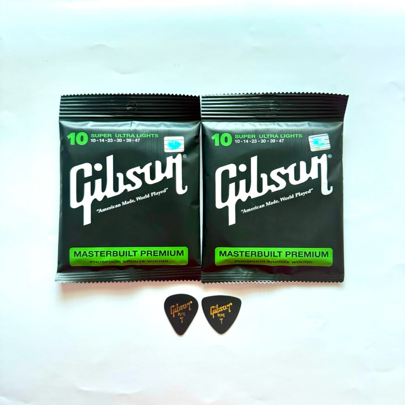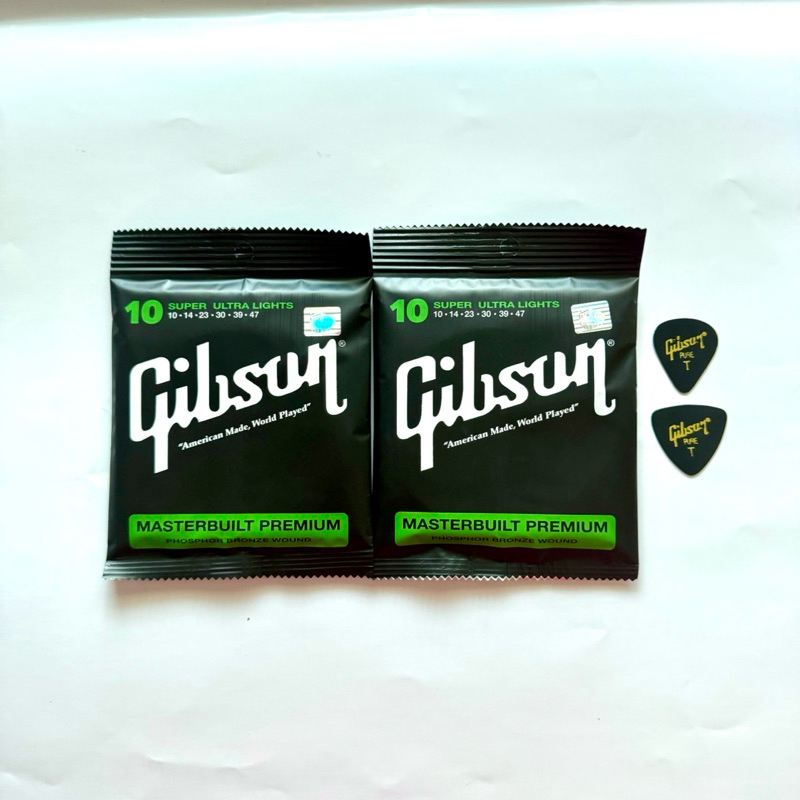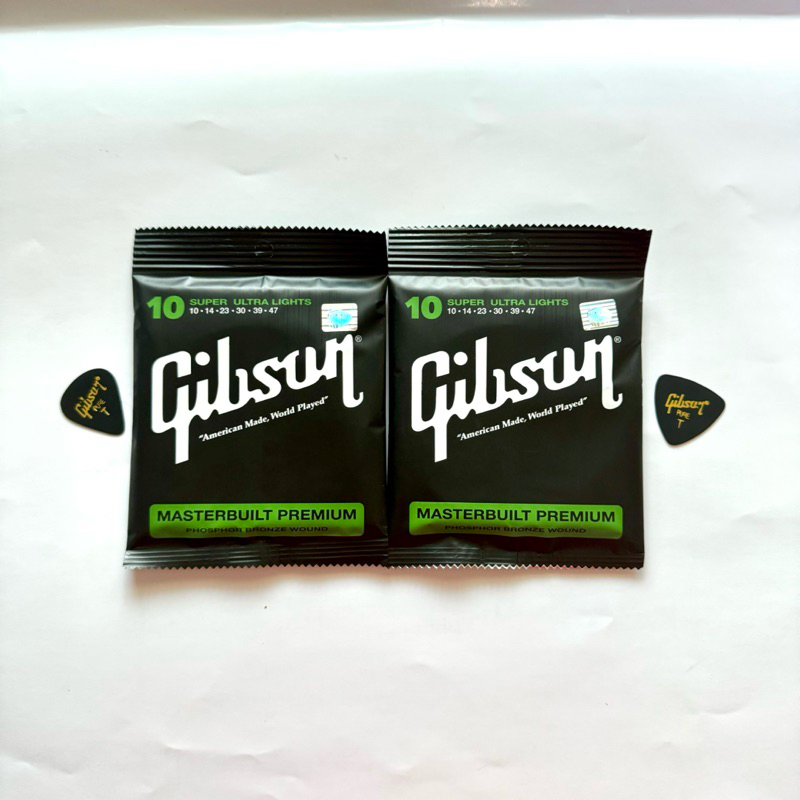สายกีตาร์โปร่งGibson เบอร์10 (เซ็ต2ชุด) ราคาสุดคุ้มสุดประหยัด แถมฟรีปิ๊กกีตาร์ 2 ชิ้น สินค้าคุณภาพพร้อมจัดส่ง