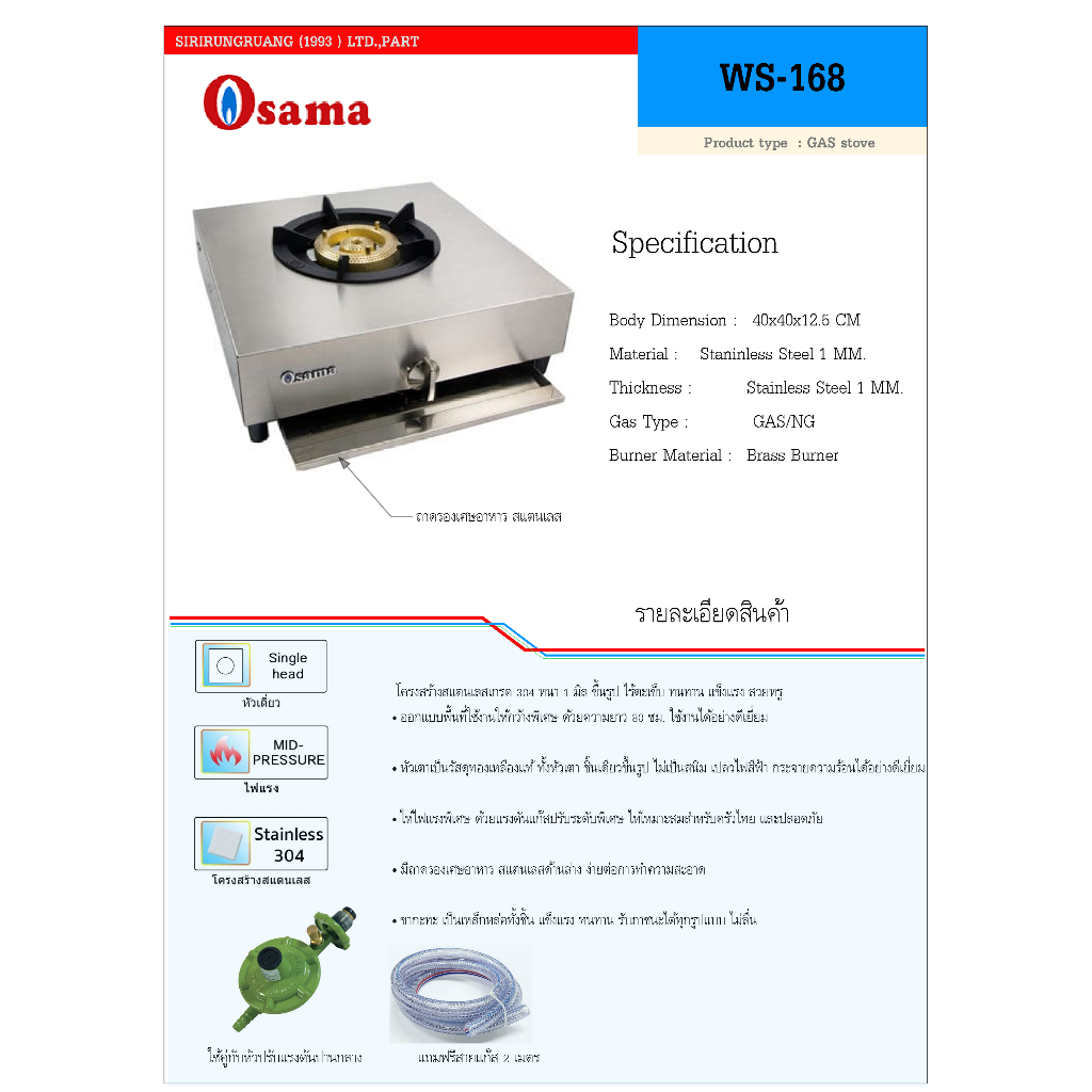 เตาแก๊ส Osama แบบตั้งเคาน์เตอร์ 1 หัวเตา ขนาด 40 ซม.
