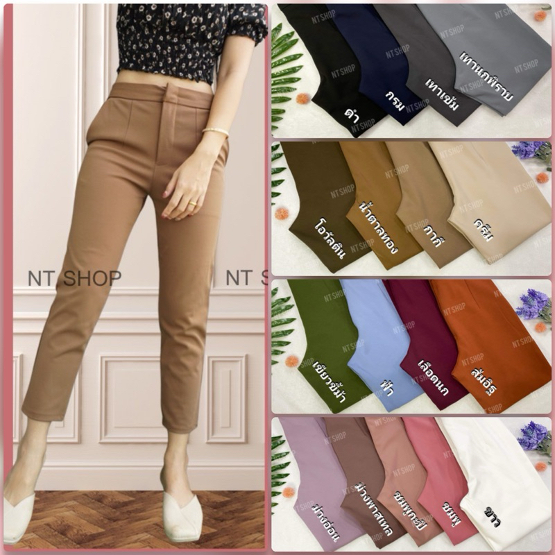 กางเกงผ้าโรเชฟ 7ส่วน เอวสูง ซิปหน้า ตะขอหน้า กระเป๋า2ข้าง ใส่ทำงานได้ ผ้าหนา นุ่ม ซักแล้วไม่ต้องรีด