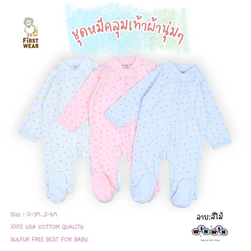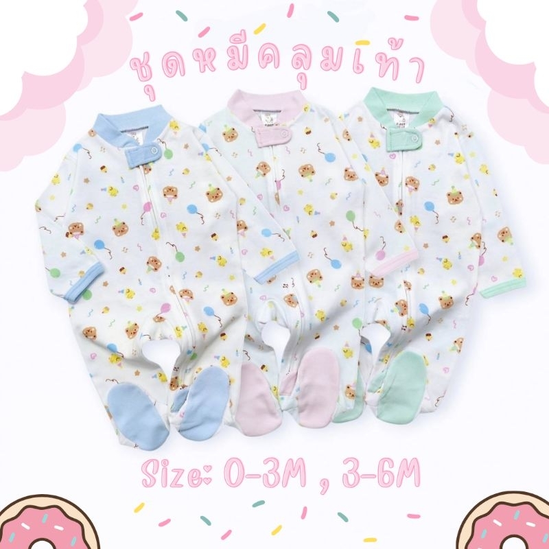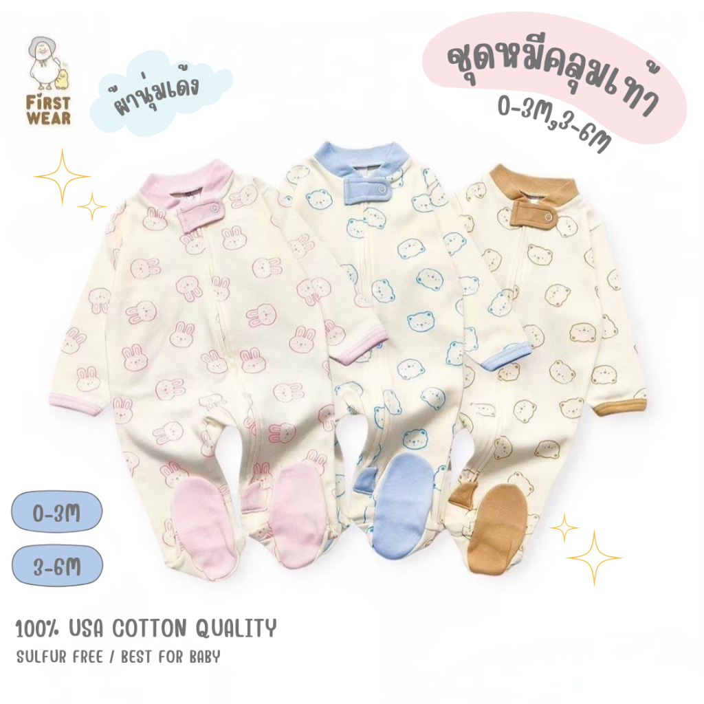 First Wear ชุดหมีคลุมเท้า 2-Way Zipper Size: แรกเกิด-6เดือน
