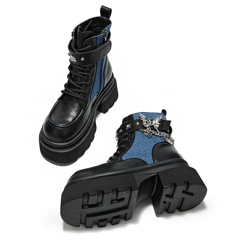 2024ฤดูใบไม้ร่วงใหม่รองเท้ามาร์ตินผีเสื้อเหลวพื้นหนาลำลองน้ำหนักเบารองเท้าอัศวินแทนนินรองเท้าบูทสั้นผู้หญิงส้นหนา