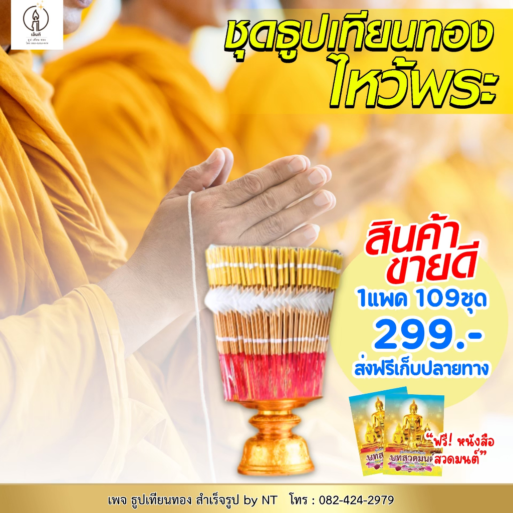 ชุดธูปเทียนทอง 109 ชุด พร้อมคำอธิษฐาน | NT FARM