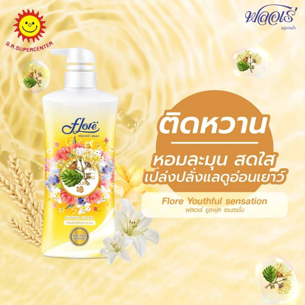 [ แพ็ค2 ] Flore Shower Cream ฟลอเร่ ครีมอาบน้ำ ขนาด 450 มล. คละสูตร (แพ็ค2ขวด)