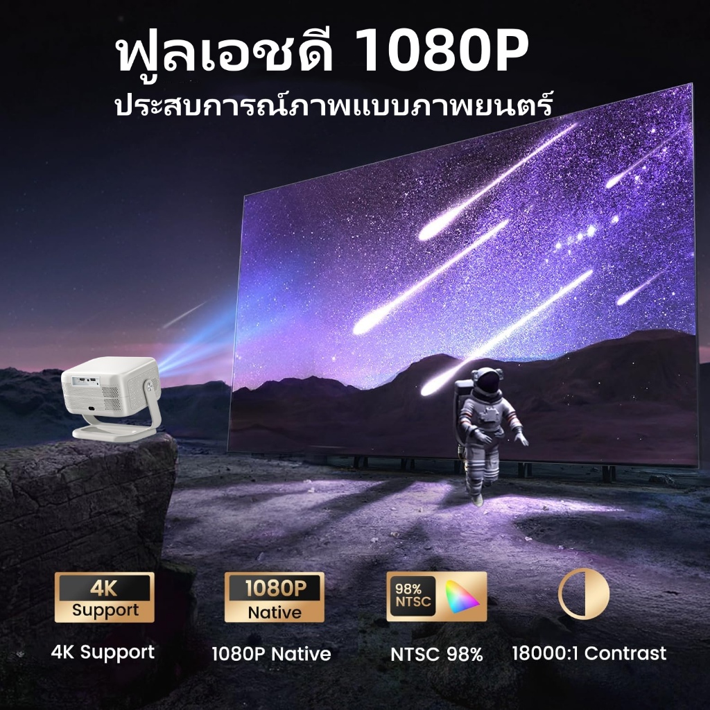 โปรเจ็กเตอร์ออโต้โฟกัส โปรเจ็กเตอร์พกพาขนาดเล็ก Android 13.0 โปรเจ็กเตอร์ระยะฉายสั้นความละเอียดสูง 4K 1080P รองรับโทรศัพท์ Android/iOS สร้างโฮมเธียเตอร์