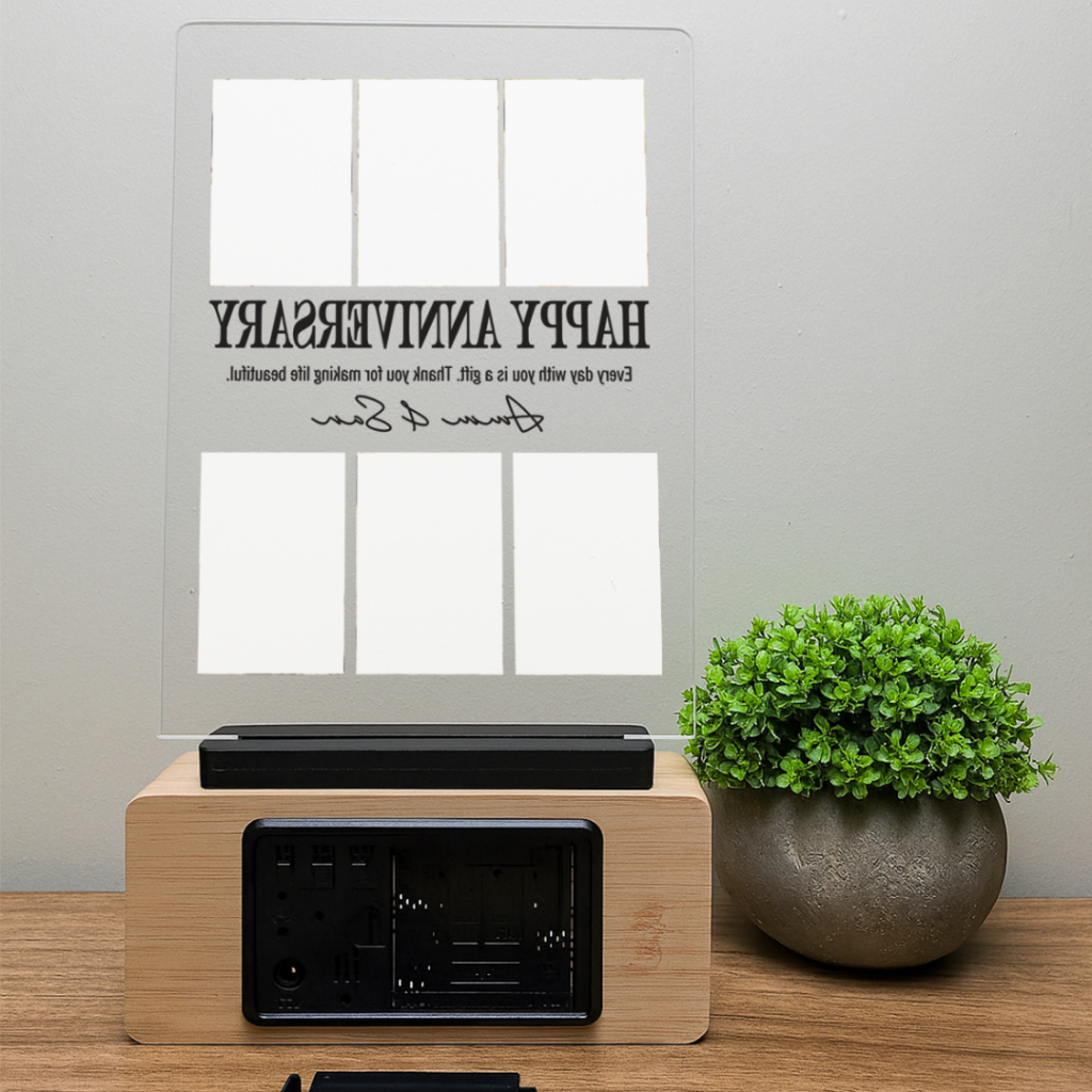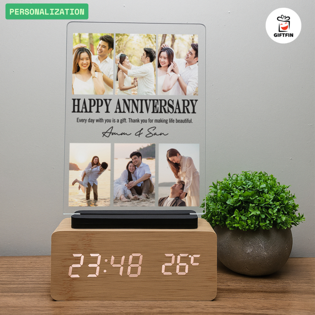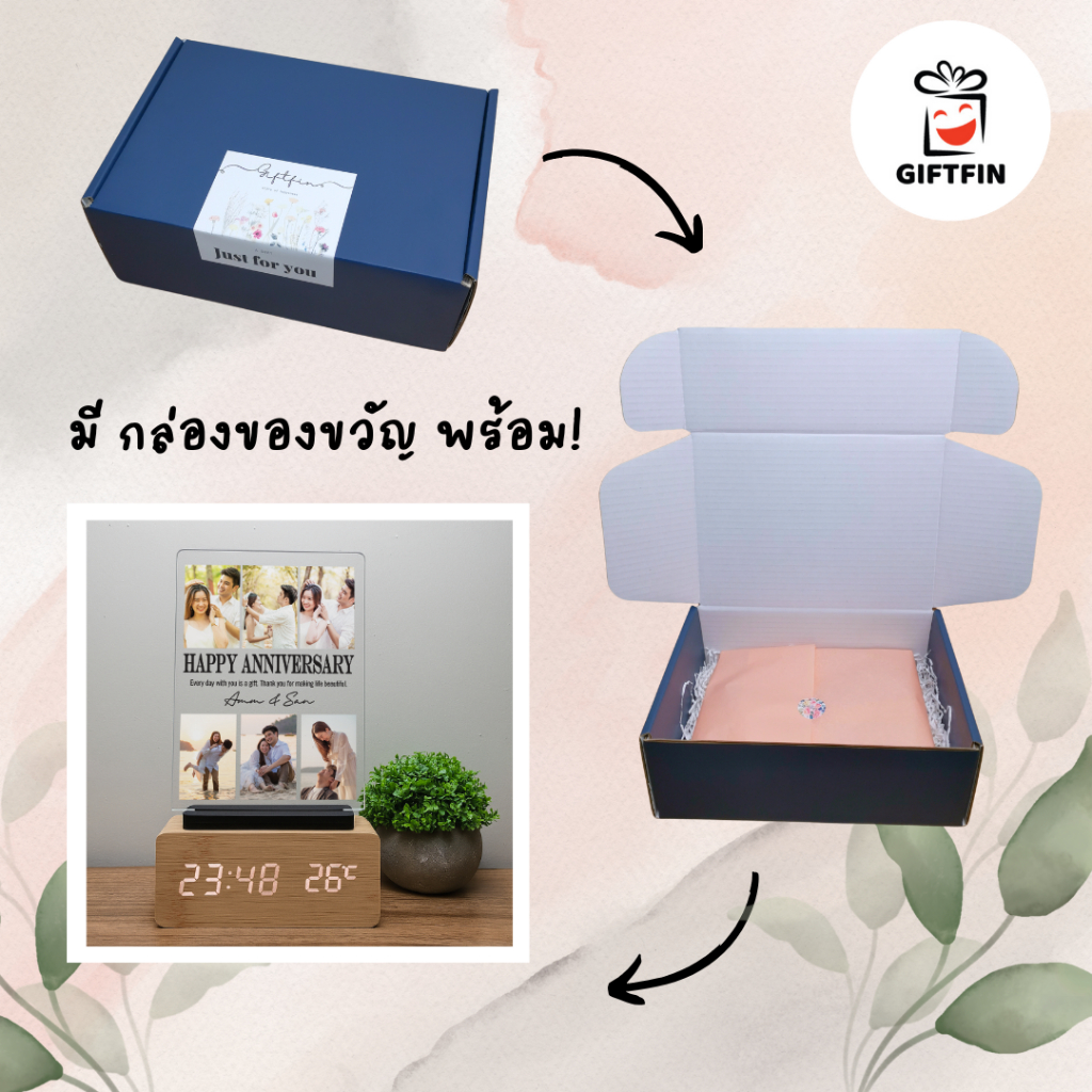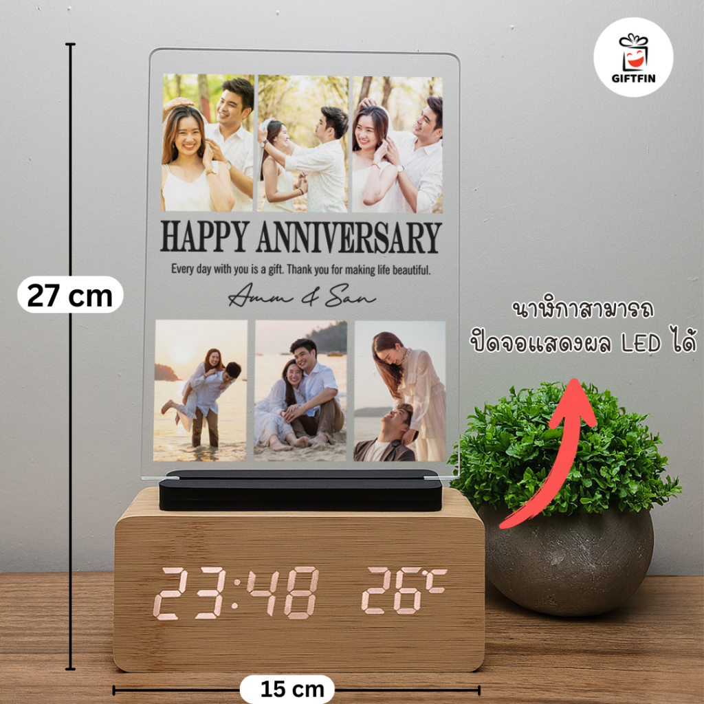 นาฬิกาไม้ LED กรอบรูป (แบบที่ 2) แนวตั้ง 6 รูป | ของขวัญวันเกิดแฟน | GiftFin ใช้ได้ทั้งเสียบสาย USB หรือ ถ่าน AAA