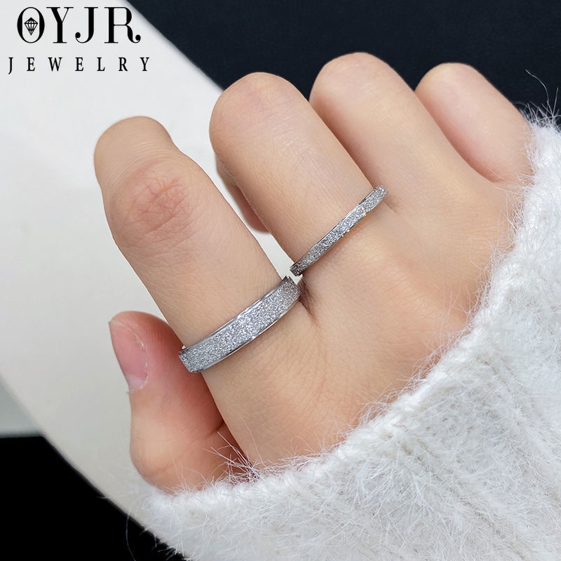 OYJR แหวนทรายเรียบๆ แหวนสแตนเลสแฟชั่นสำหรับผู้หญิง