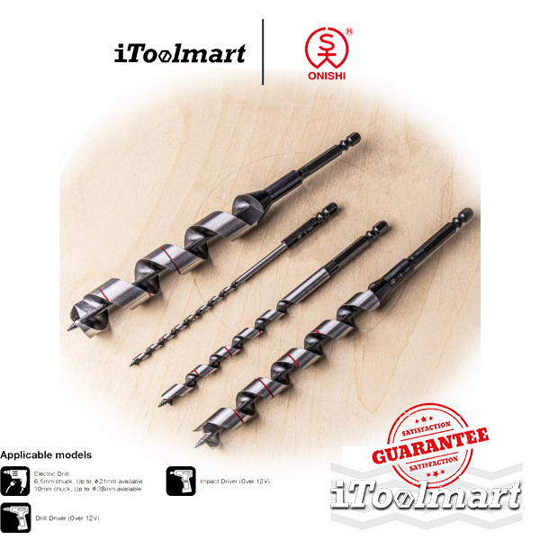 ONISHI ดอกสว่านเจาะไม้ NO.2AVX มีสเกลวัดความลึก ก้านดอก ร่อง 2 ชั้น 3 mm.-21 mm.