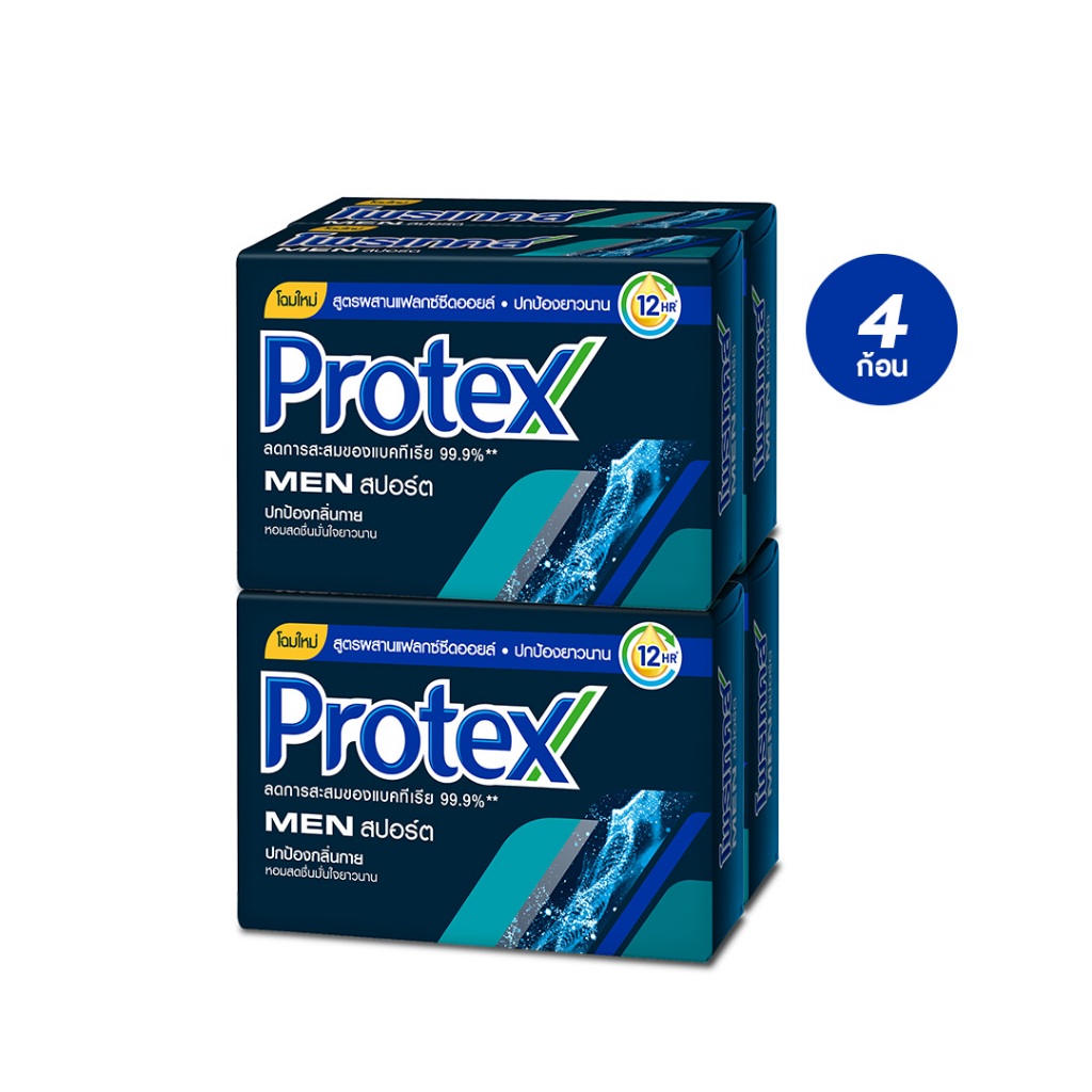 Protex โพรเทคส์ ฟอร์เมน สปอร์ต 90 กรัม รวม 4 ก้อน ให้ความเย็นสดชื่นยาวนาน (สบู่ก้อน)