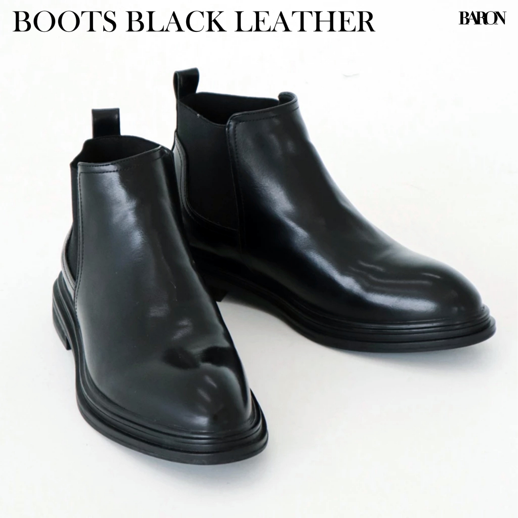 BARON BOOTS Black Leather Shoes รองเท้าหนังวัวหัวแหลม หุ้มส้น