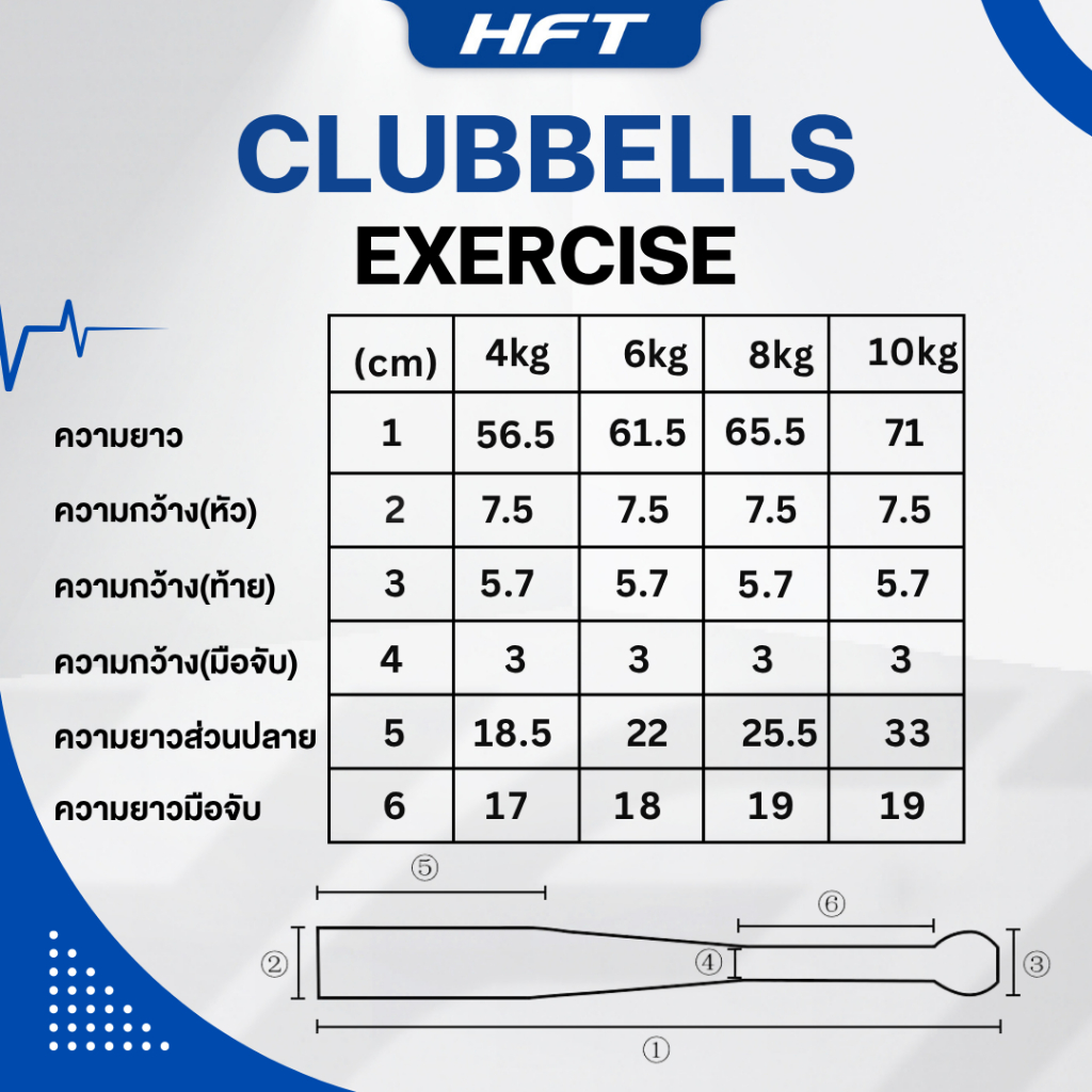 กระบอง กระบองออกกำลังกาย บาร์ออกกำลังกาย 2-12kg กิโล กระบองน้ำหนัก Clubbells Exercise - Homefittools