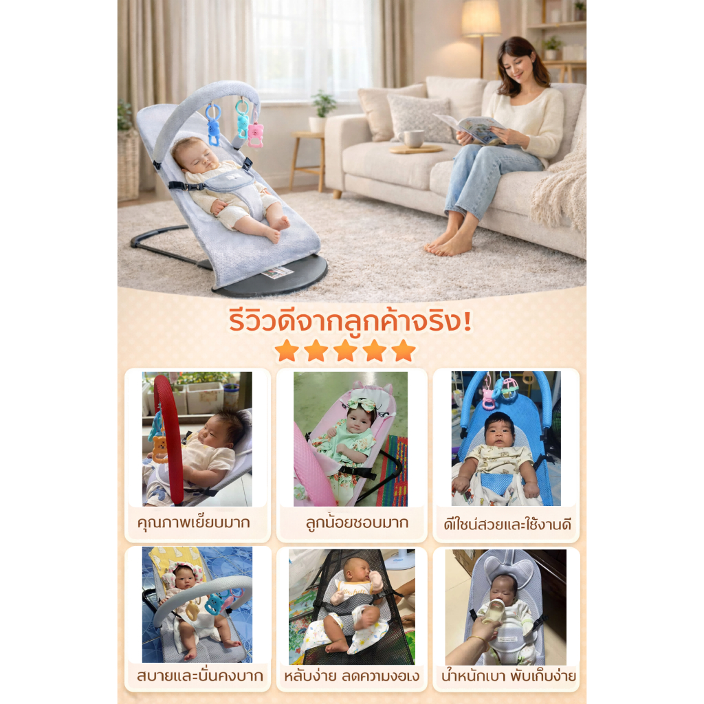 MINIBEIGE💎เก้าอี้โยกสำหรับเด็ก เก้าอี้โยกเด็กอ่อน เปลป้อนข้าว ปรับได้ 3ระดับ รับน้ำหนักได้ 20กิโล มี
