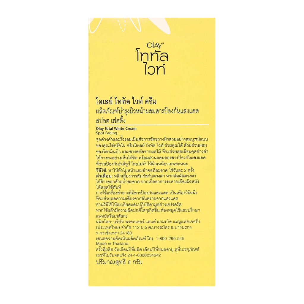 (กล่อง6ซอง) Olay Total White โอเลย์ โททัล ไวท์ ครีม ลดเลือนจุดด่างดำ 7.5/8ก.