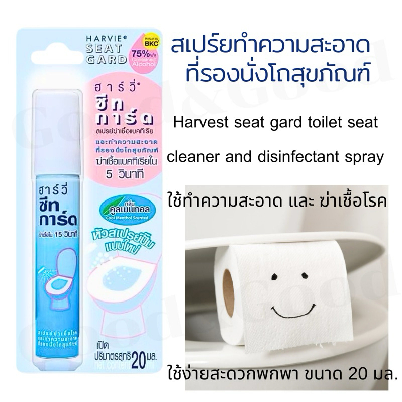 ทำความสะอาดที่รองนั่งโถส้วม Harvie (ฮาร์วี่) Seat Guard น้ำยาฆ่าเชื้อแบคทีเรียบนพื้นผิว ภายใน5วิ แอลกอฮอล์75% ขนาด 20ml.