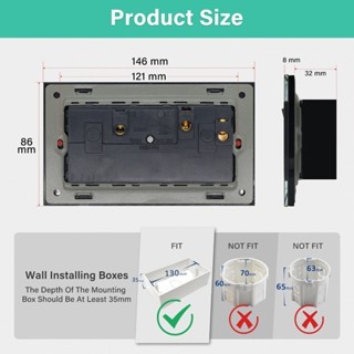 เรือจาก THBSEED ซ็อกเก็ตผนังสากลสลับคู่พร้อม USB C & USB A - 2 Gang, เต้ารับผนังมัลติฟังก์ชั่น, พร้อมแผงกระจกที่ใช้งานได้สําหรับปลั๊กนับ 180 ประเภท
