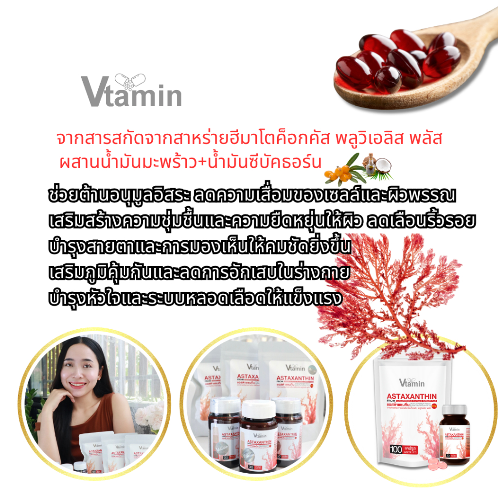 (100แคปซูลทานได้3เดือน)Astaxanthinแอสต้าแซนทีนลดความเสื่อมของเซลล์และผิวพรรณชะลอริ้วรอย