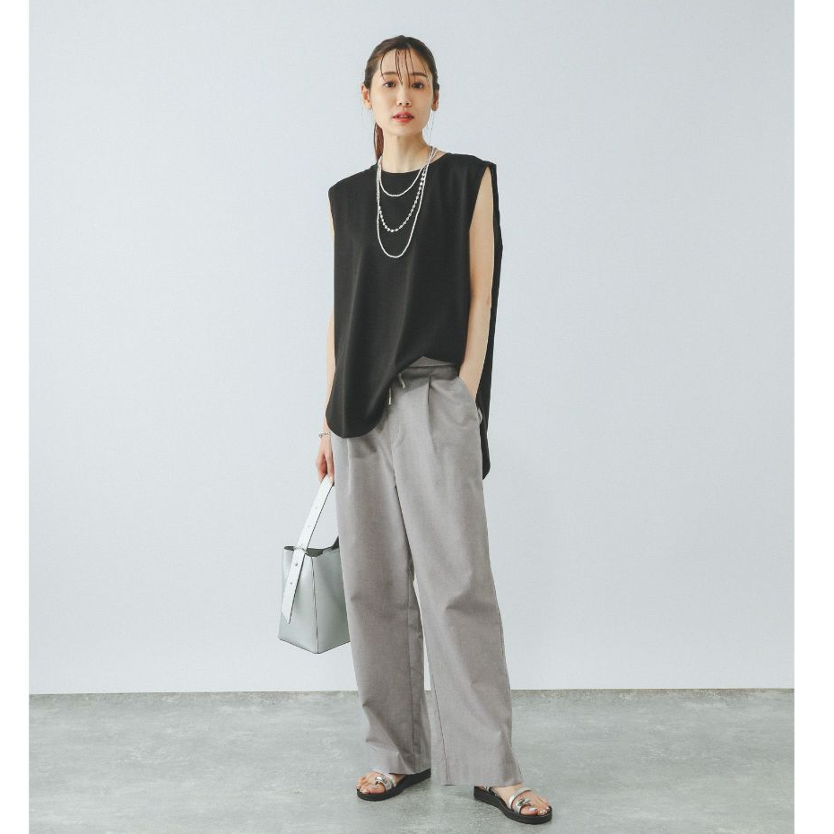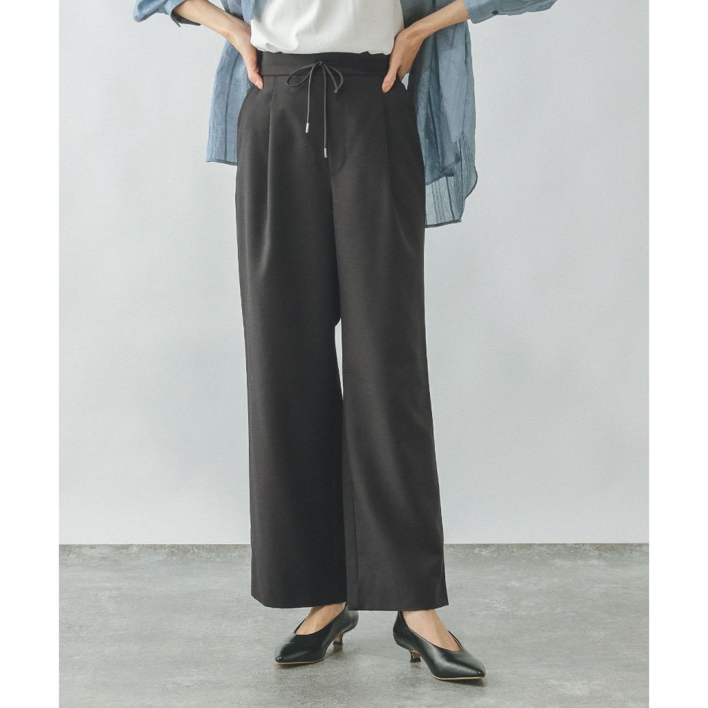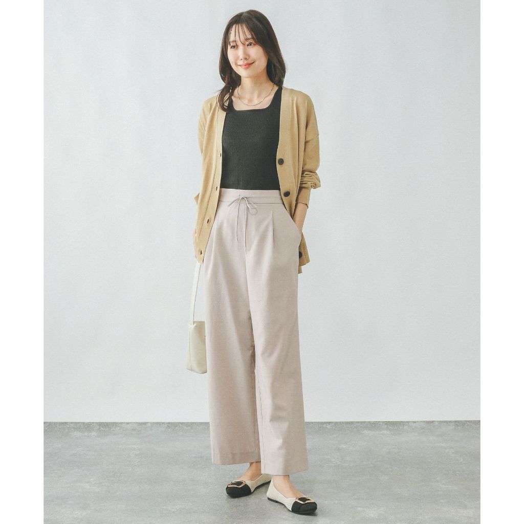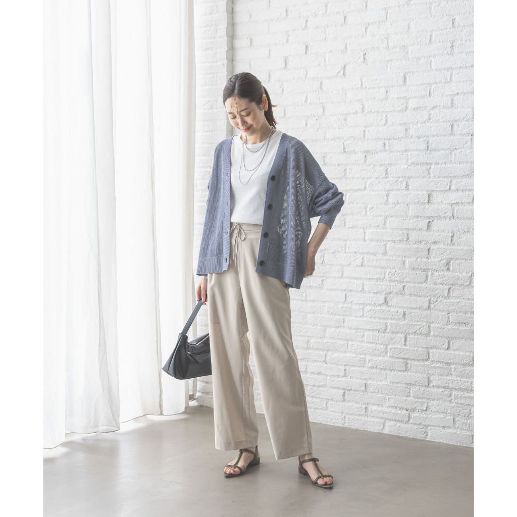 GLOBAL WORK กางเกงขายาว ขอบเอวยางยืด สัมผัสเย็นสบาย Easy-care Linen Straight Pants