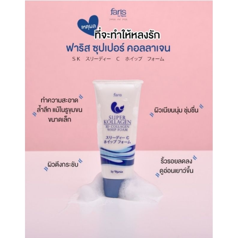 โฟมล้างหน้าฟาริส ซุปเปอร์ คอลลาเจน ทรีดี คอลลาเจน วิปโฟม 👍ของแท้ 💯% 👍หมดอายุปี 23/01/28