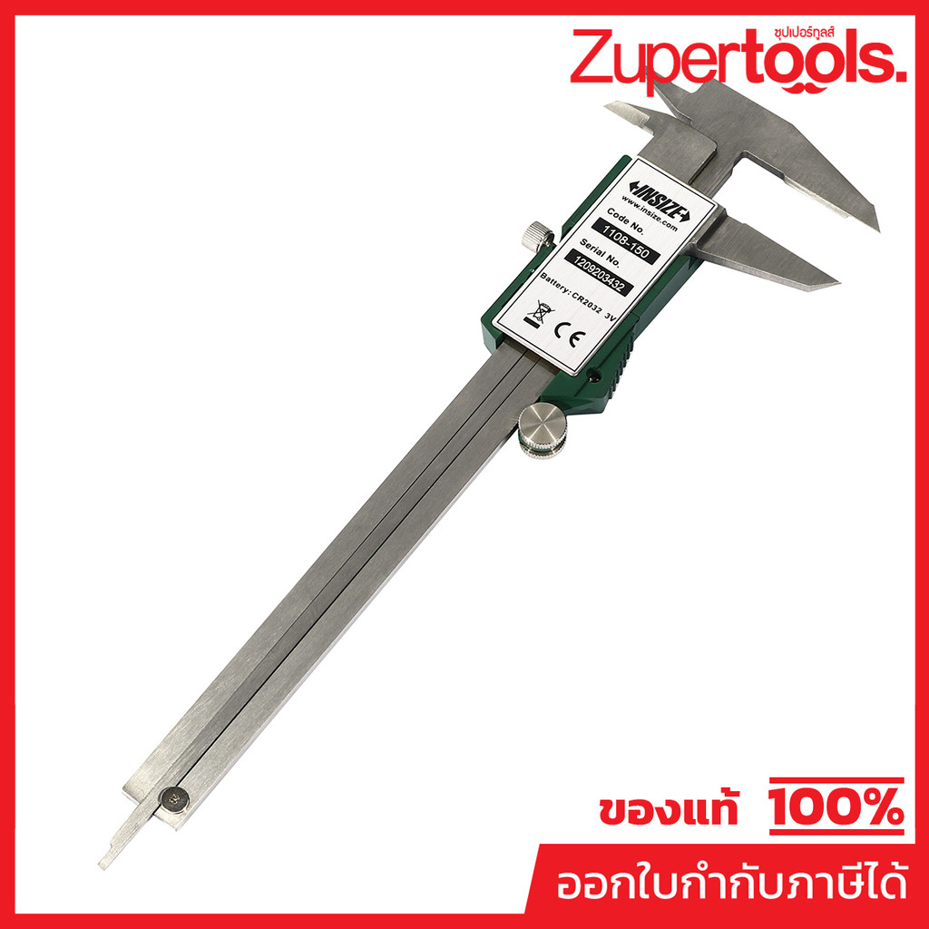 INSIZE 1108-150 เวอร์เนียร์ดิจิตอล ช่วงวัด 0–150 มม./0–6 นิ้ว G 0.01 มม./0.0005 นิ้ว ระบบเปิด-ปิดอัตโนมัติ (อินไซส์)