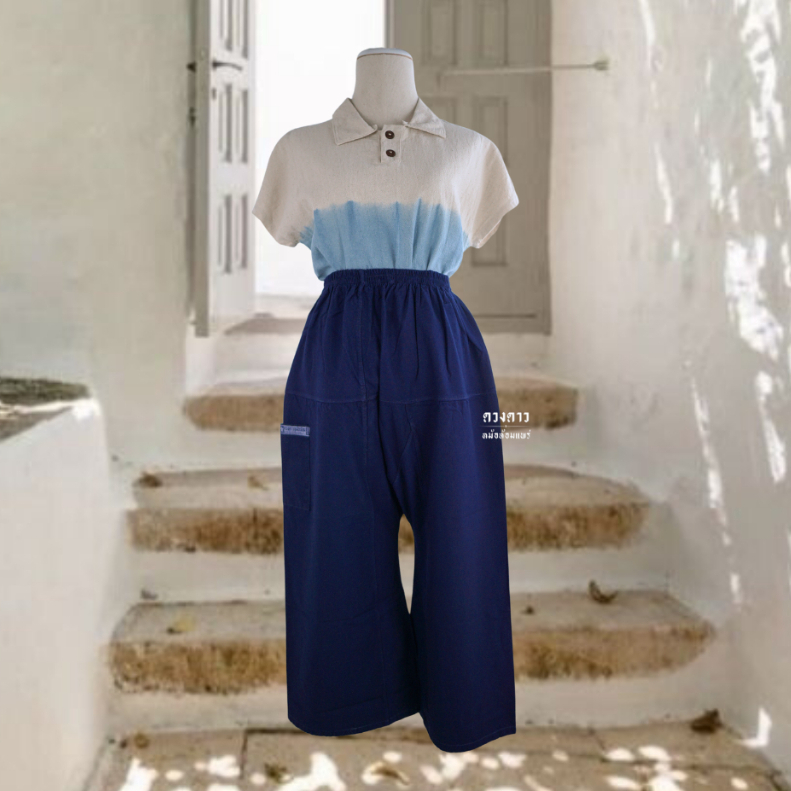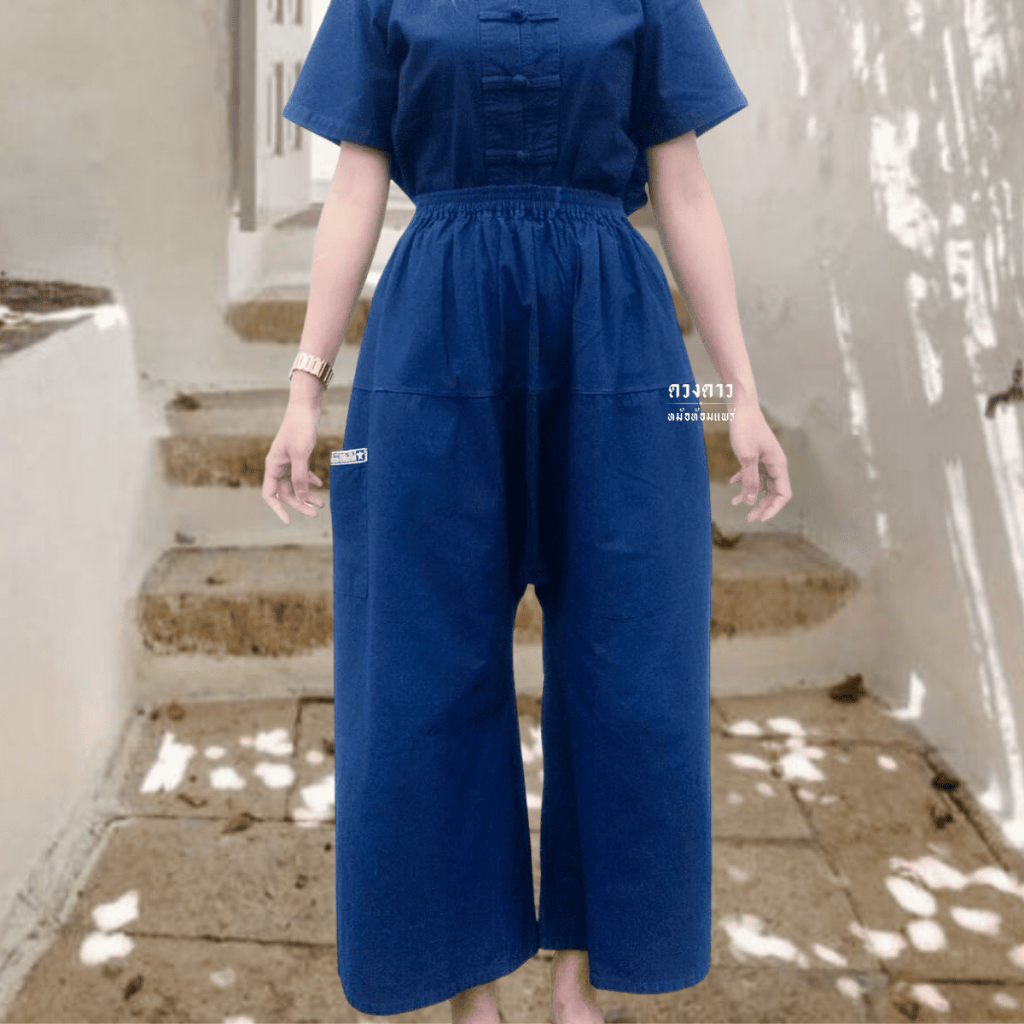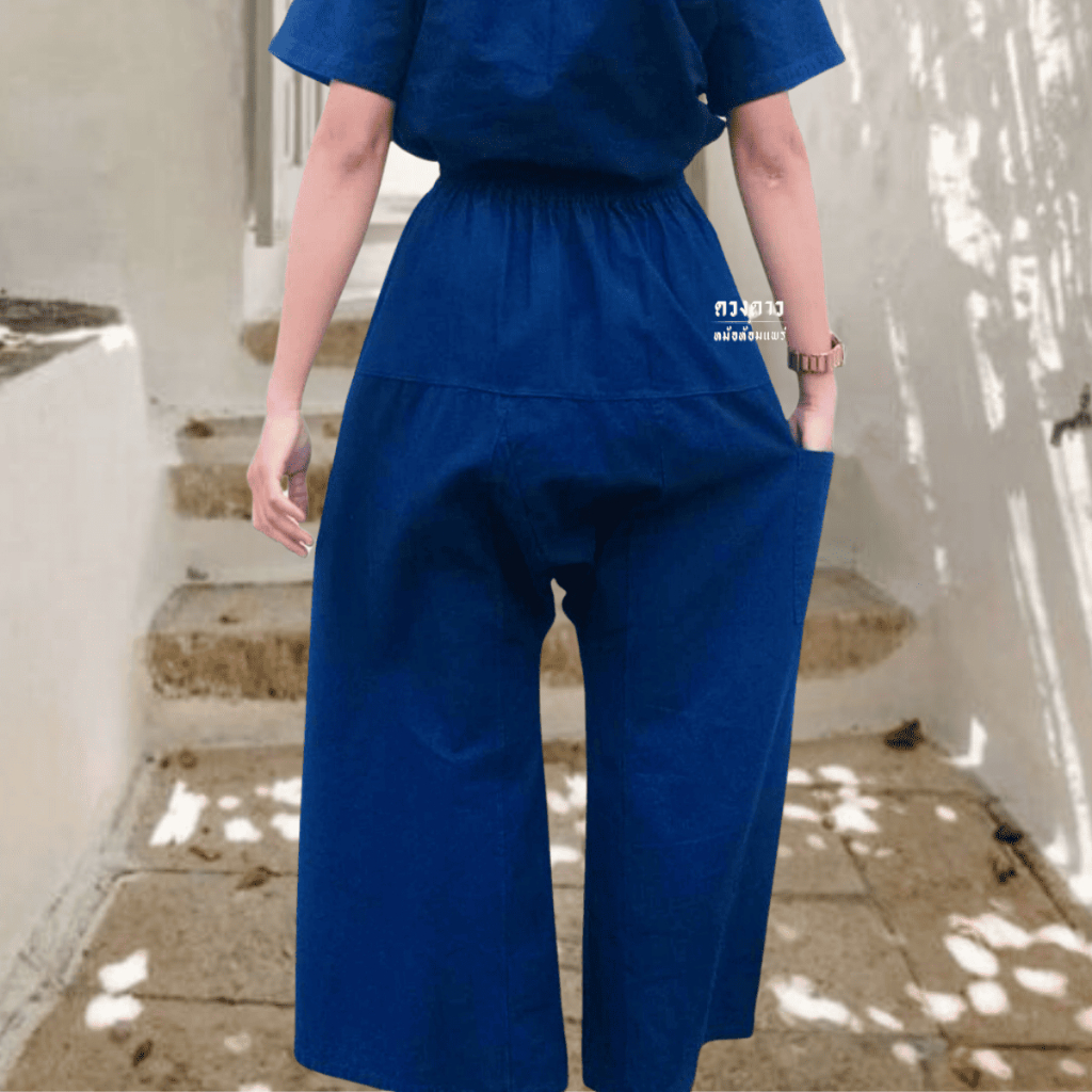 [ดวงดาวหม้อห้อมแพร่] กางเกงกียาวหม้อห้อม (ขาก๊วยเอวรูด/เอวยืด) ขายาว ใส่ได้ทั้งชาย/หญิง