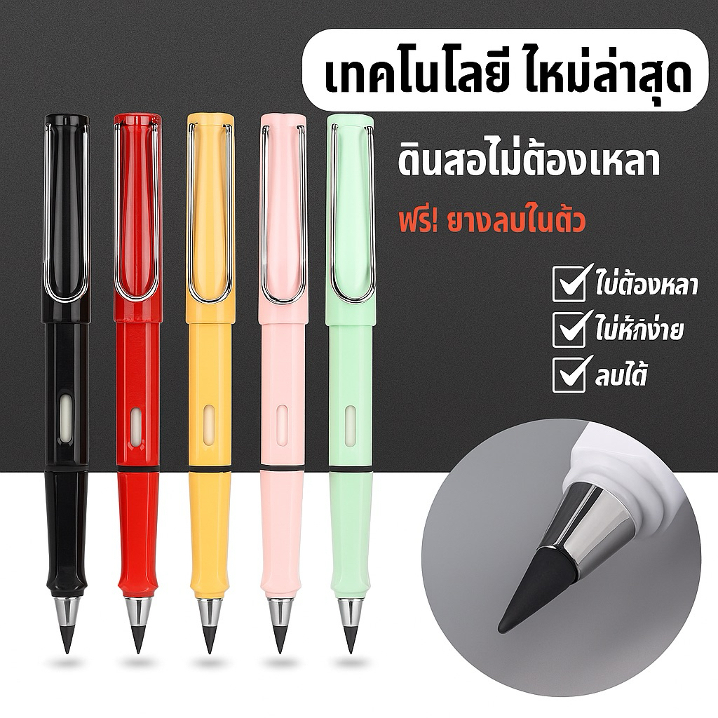 ใหม่! ดินสอไม่ต้องเหลา ยางลบในตัว เทียบเท่าดินสอไม้ 100 แท่ง HB ดินสอนิรันดร์ เครื่องเขียน พร้อมส่ง