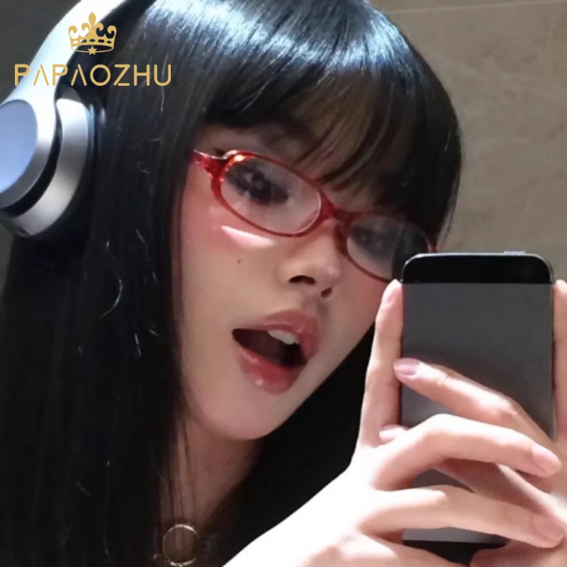 Papaozhu วินเทจ สีแดง เลนส์ใส แคบ สี่เหลี่ยมผืนผ้า แว่นตาสําหรับผู้หญิง กลางแจ้ง แฟชั่น แว่นตา OOTD เครื่องประดับ