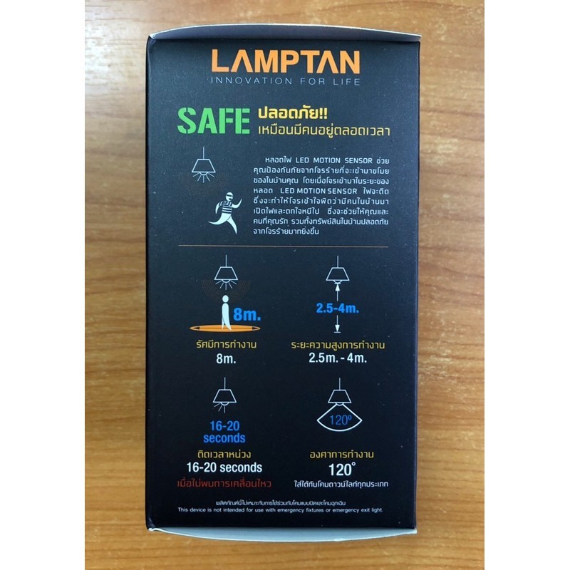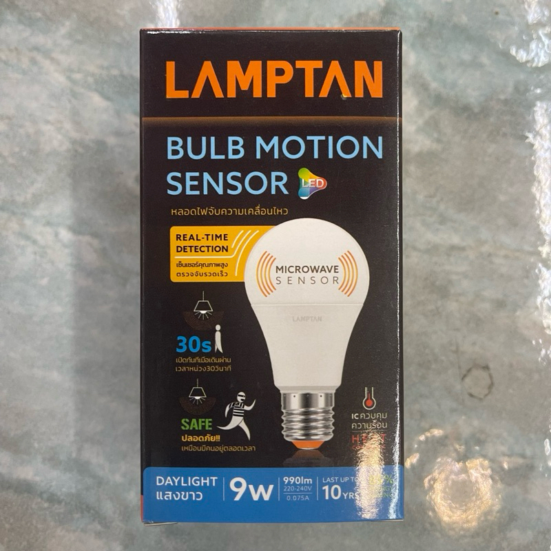 LAMPTAN หลอดไฟตรวจจับการเคลื่อนไหว LED Motion Sensor 9 วัตต์ แสงขาว แสงเหลือง