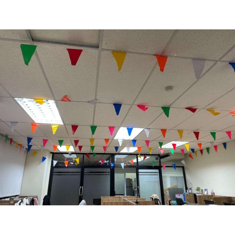 ธงราว ธง7สี ธงสามเหลี่ยมพลาสติก (1 เส้นธง 35 ผืนยาว 20 เมตร) ราคายกแพ็ค 10 เส้น ธงPVC ทนแดด ทนฝน ราคาโรงงาน