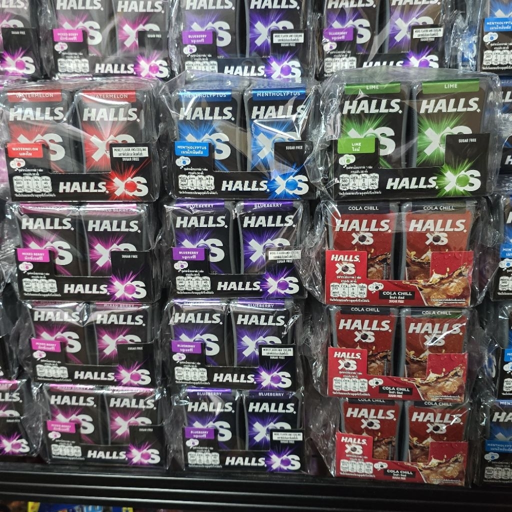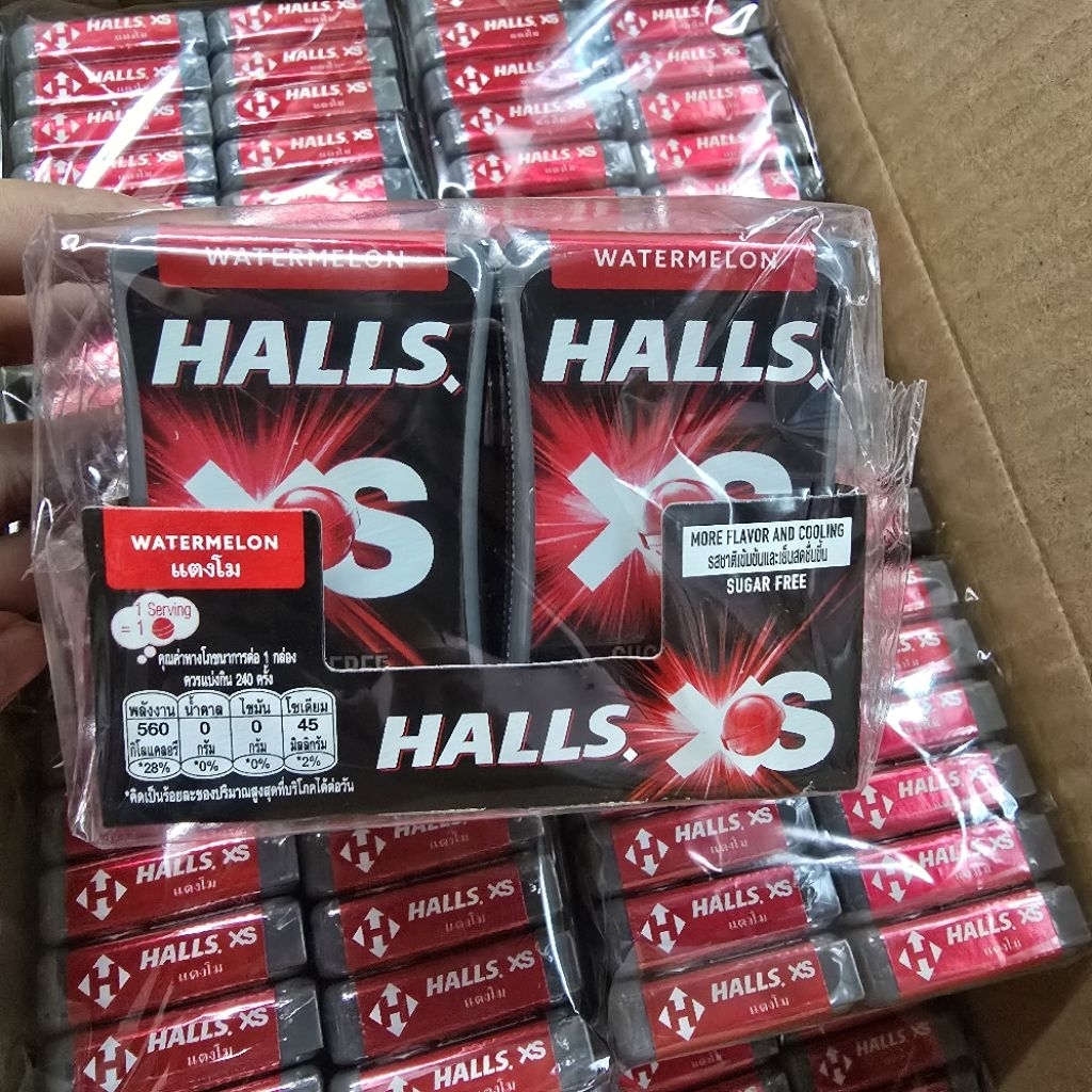 [แพ็ค12กล่อง] Halls ฮอลล์ เอ็กซ์เอส ลูกอมชูการ์ฟรี กลิ่นแตงโม รสผลไม้รวม 12.6g