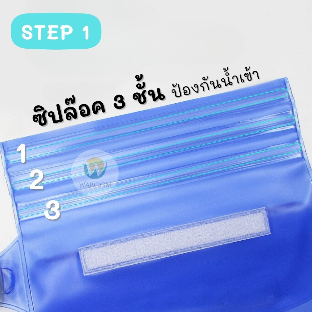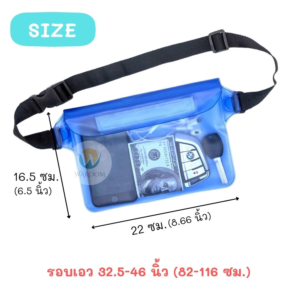 กระเป๋าใส่มือถือกันน้ำ ซองใส่โทรศัพท์กันน้ำ PVC แบบคาดเอว สายปรับความยาวได้ มีซิปล๊อค 3 ชั้น สีสันสดใส สัมผัสหน้าจอได้