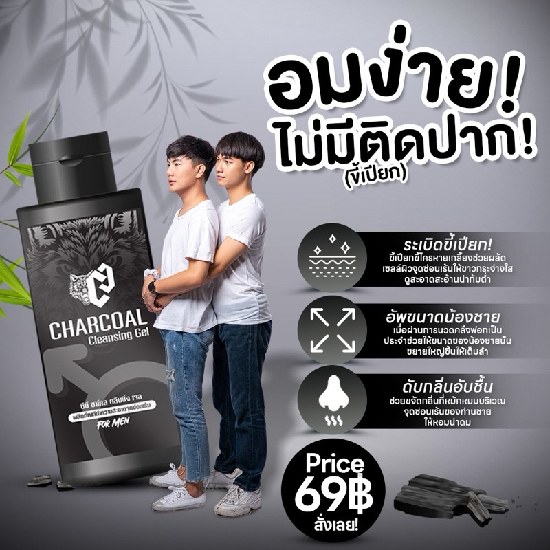 พร้อมส่ง CHARCOAL สบู่เหลว เจลชาโคล คลีนซิ่ง กำจัดขี้เปียก กลิ่นเหม็น พร้อมบำรุงน้องชาย