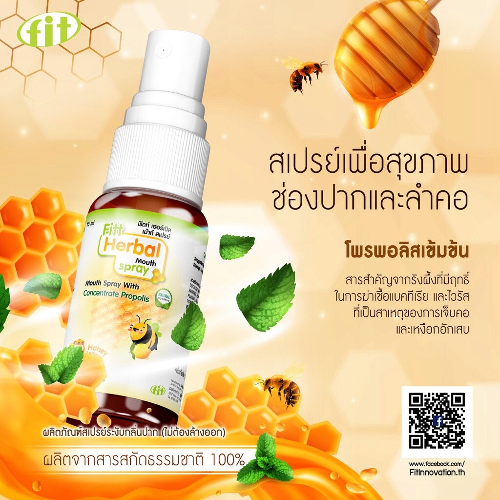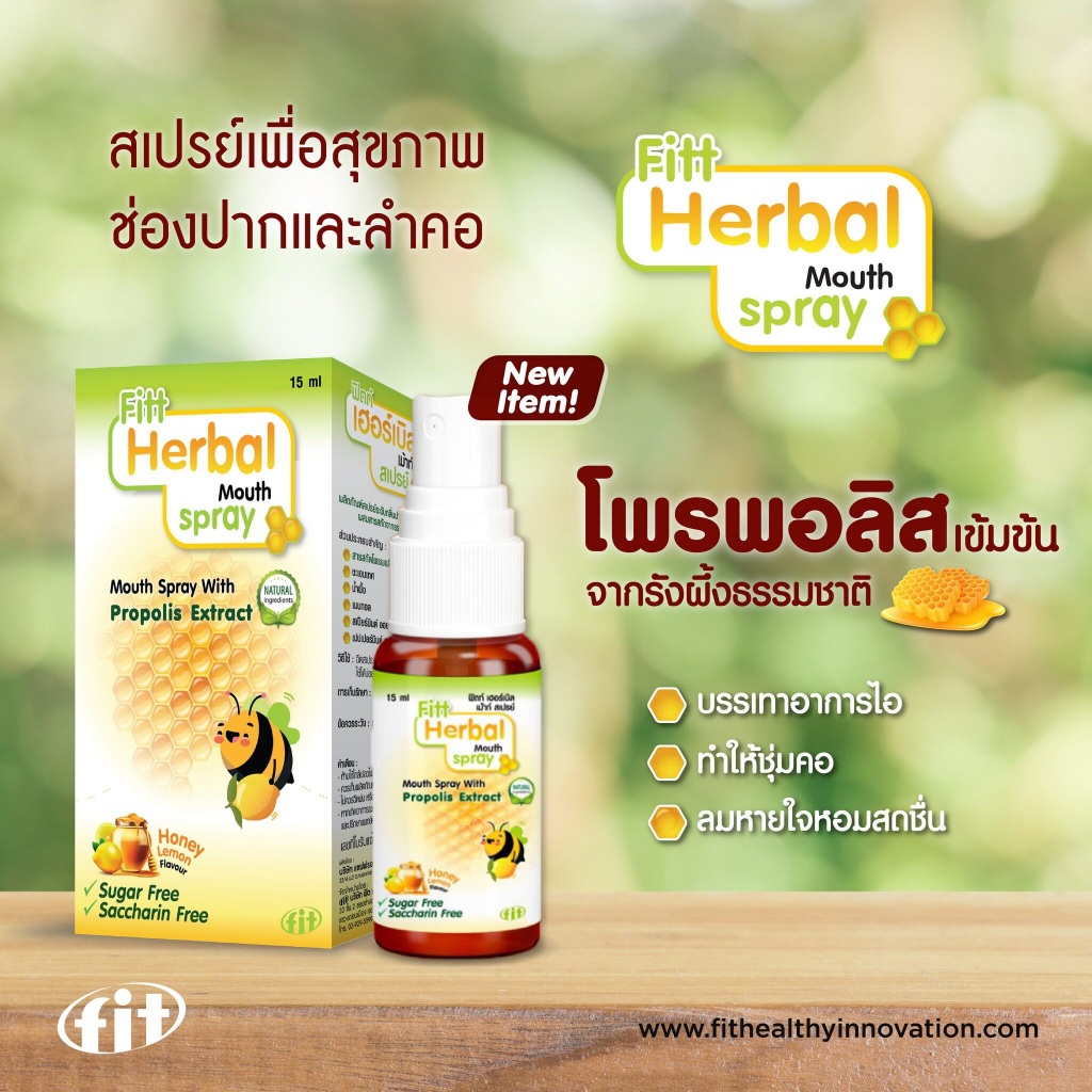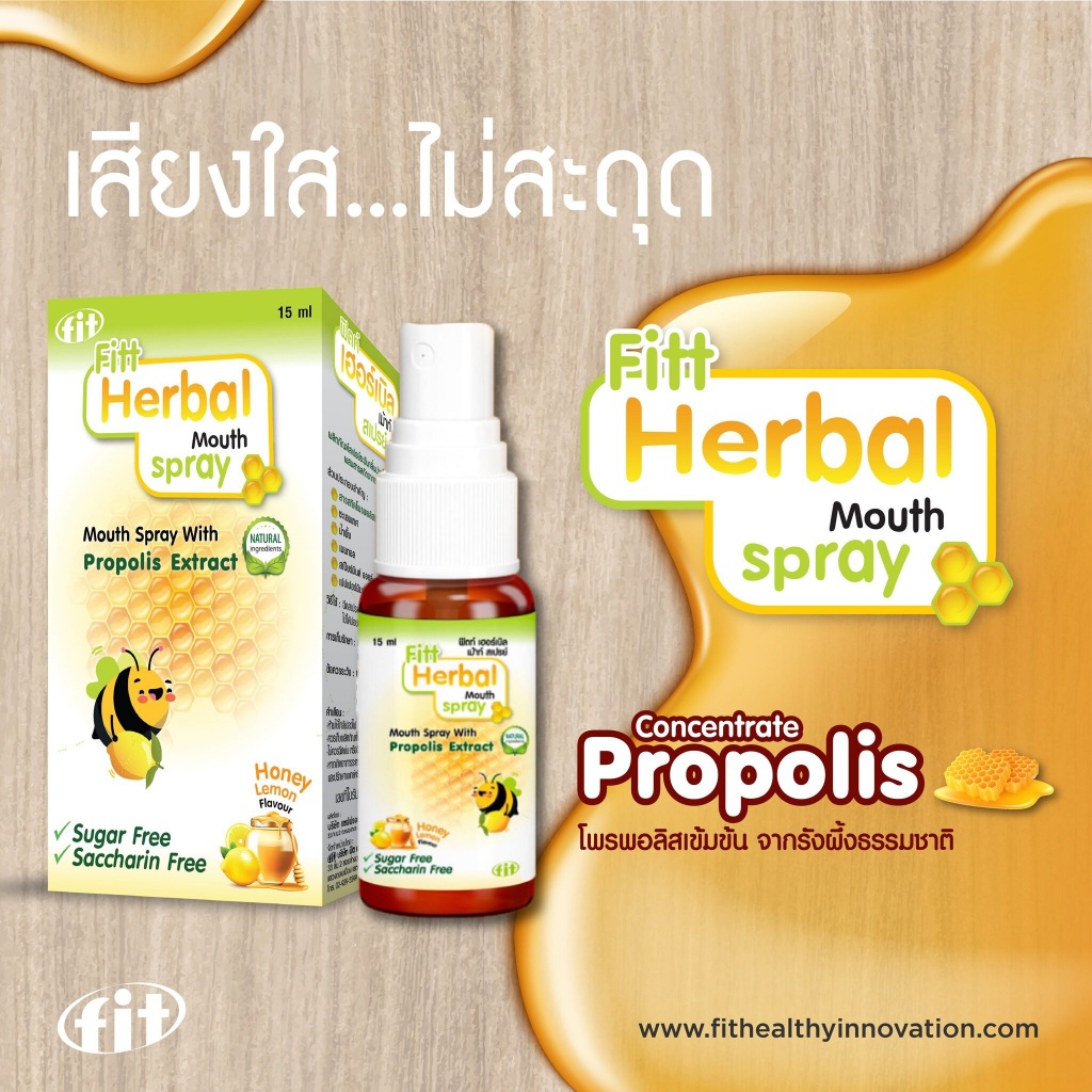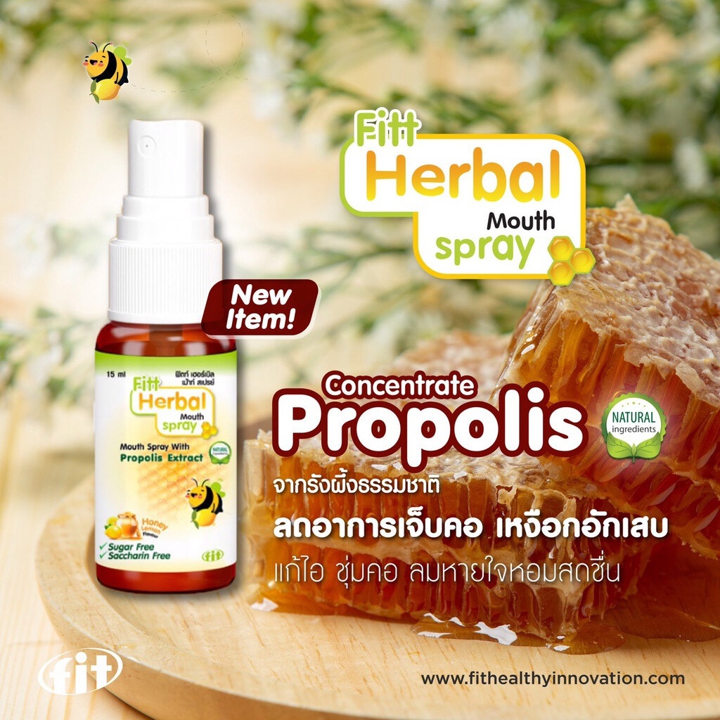 สเปรย์โพรพอลิส Fitt Herbal Mouth Spray ฟิตท์ เฮอร์เบิล เม้าท์ สเปรย์ [15 ml.] สเปรย์ ช่องปากและลำคอ