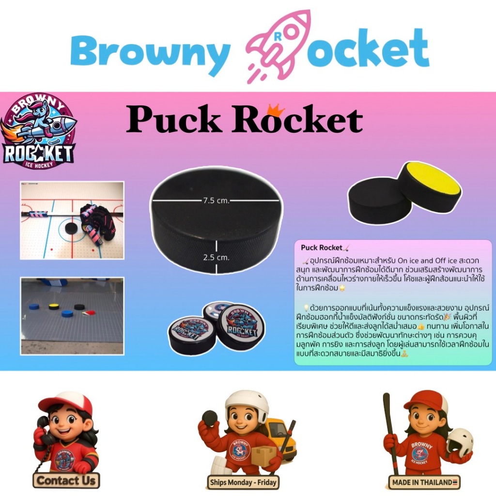 ลูกพัค มาตรฐานสากล โค้ชชม มันลื่นมาก Puck Rocket Ice Hockey ฮอกกี้น้ำแข็ง On Ice and Off Ice