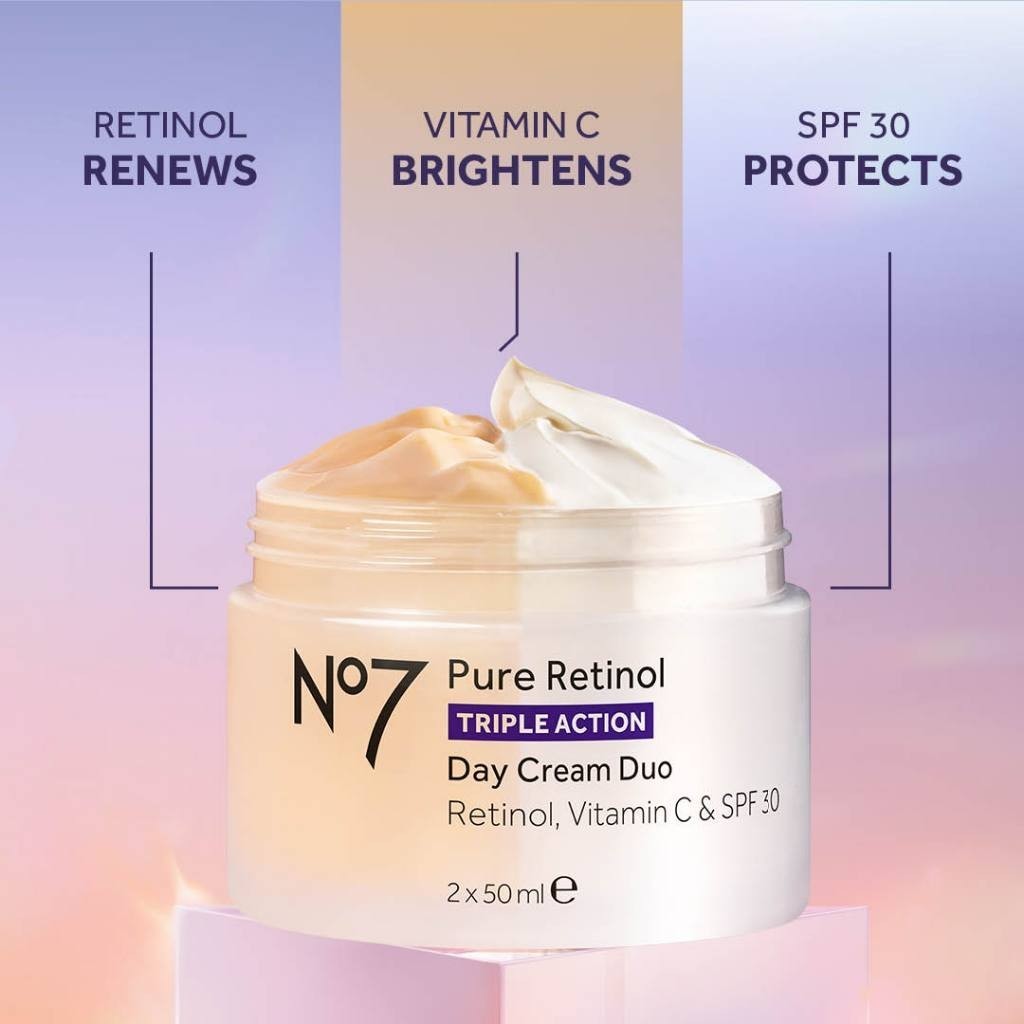 No7 Pure Retinol Triple Action Day Cream Duo RetinolVitamin C & SPF 30 2X50 ML. นัมเบอร์เซเว่น เรตินอล